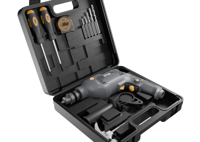 Tenha uma solução completa para dar start no seu projeto! Em uma maleta compacta, a ferramenta vem com 11 acessórios, entre eles: punho auxiliar multidirecional, limitador de profundidade, trena de 3 metros, chave philips, chave de fenda, brocas para madeira (6 e 8 mm), brocas para alvenaria (5, 6 e 8 mm) e martelo.