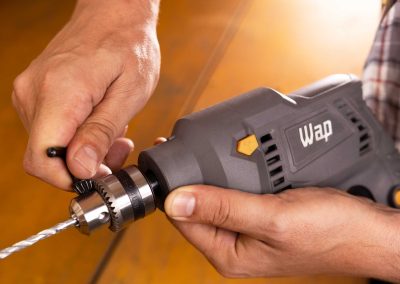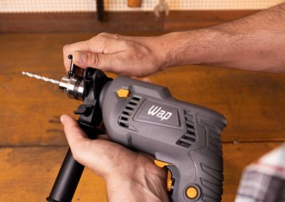 A ferramenta possui um motor potente de 700W e mandril de (3/8”) com capacidade para brocas de até 10mm. Além da empunhadura ergonômica da WAP WF 700K10, o punho auxiliar multidirecional do acessório se adapta facilmente às necessidades de profissionais e entusiastas.