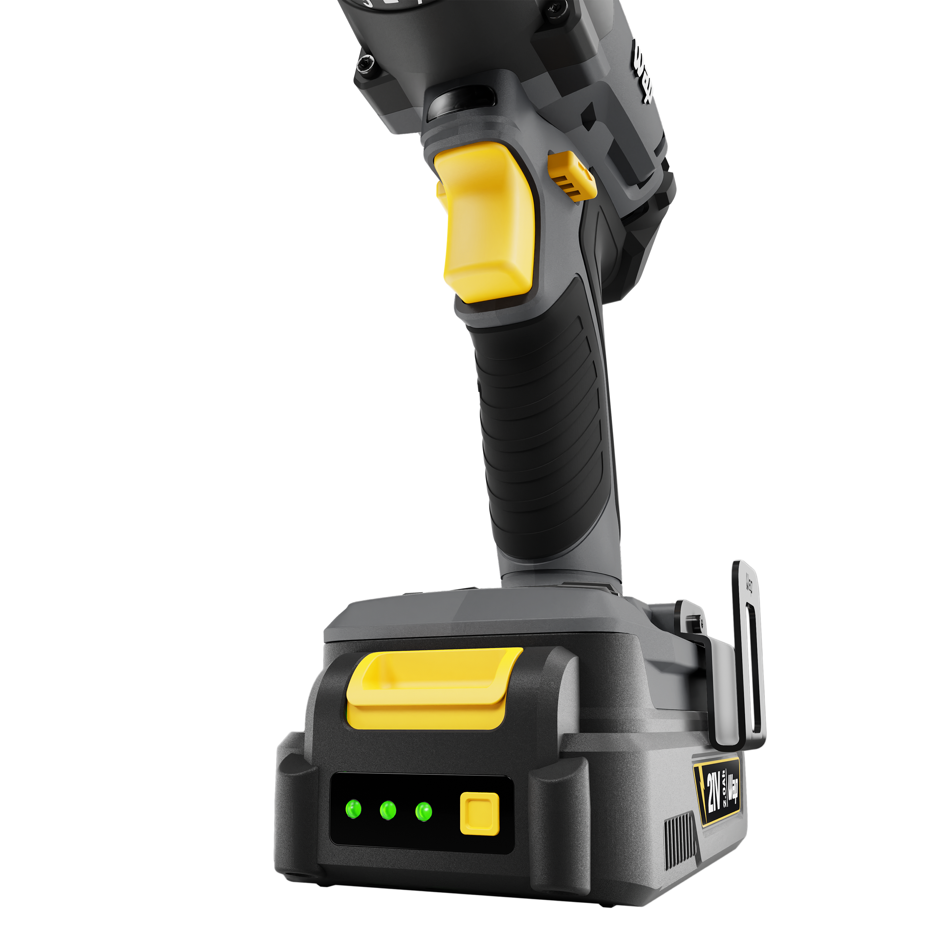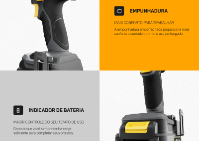 A empunhadura ergonômica foi projetada para oferecer conforto durante o uso, enquanto o clip para cinto garante conveniência e praticidade. Além de contar com a bateria li-íon de 21V é removível, com ela, você garante mais horas de trabalho. Além disso, conta com uma luz de LED, que traz mais visibilidade para as áreas de trabalho até nas situações mais desafiadoras.