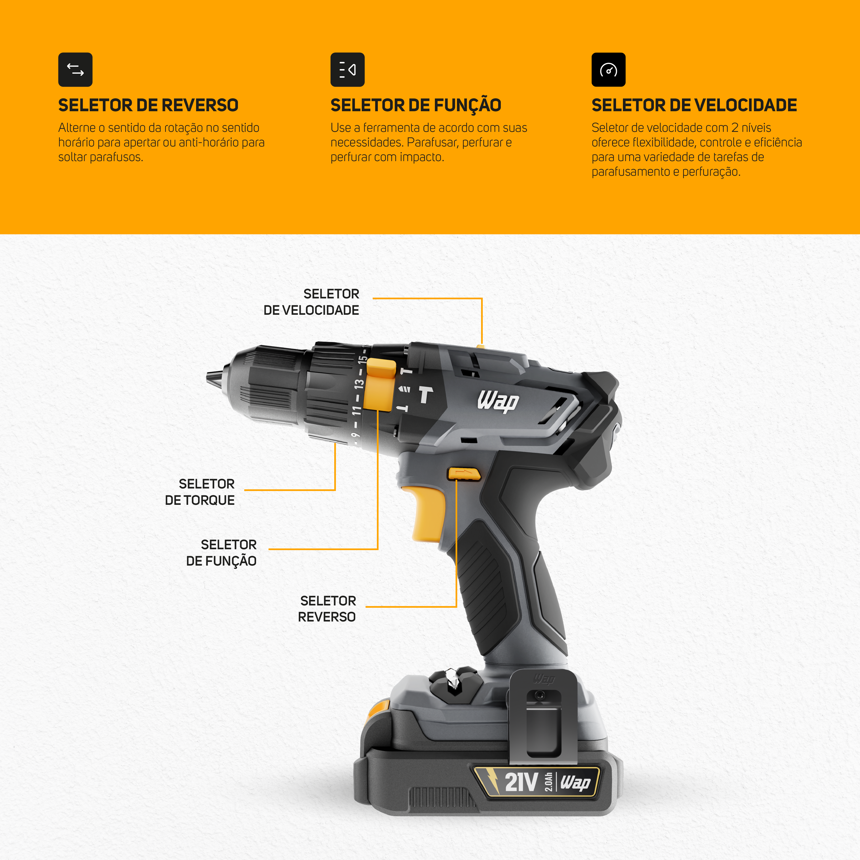 | TÍTULO: | Parafusadeira e Furadeira de Impacto WAP K21 ID01 |