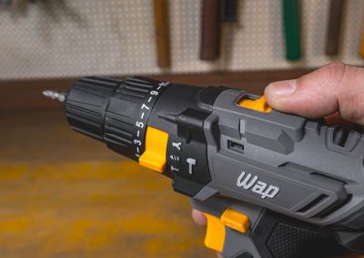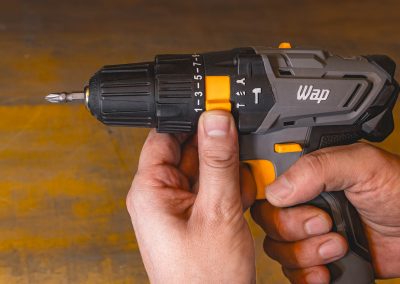 A Parafusadeira e Furadeira de Impacto 3/8" WAP K21 ID01 conta com um mandril de aperto rápido 3/8" (10mm). Com 21 níveis de torque, ela permite que você ajuste a força de acordo com a tarefa específica. Além disso, o seletor de função oferece a flexibilidade de alternar entre parafusar, perfurar e perfurar com impacto, enquanto o seletor de velocidade de 2 níveis permite adaptar a velocidade de rotação conforme necessário.