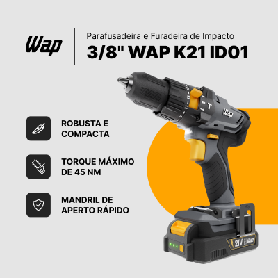 A Parafusadeira e Furadeira de Impacto 3/8" WAP K21 ID01 é uma escolha excepcional para quem busca eficiência, controle e desempenho em suas atividades.