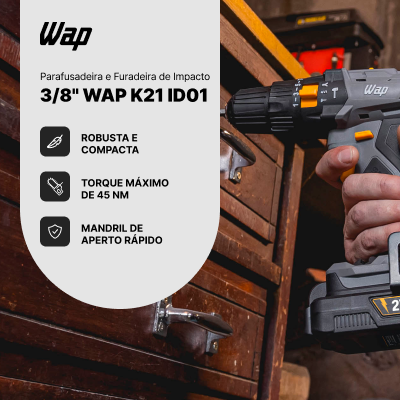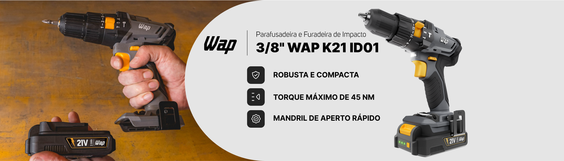 | DESCRIÇÃO: | WAP PARAFUSADEIRA E FURADEIRA DE IMPACTO 3/8" K21 ID01 |