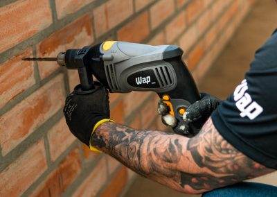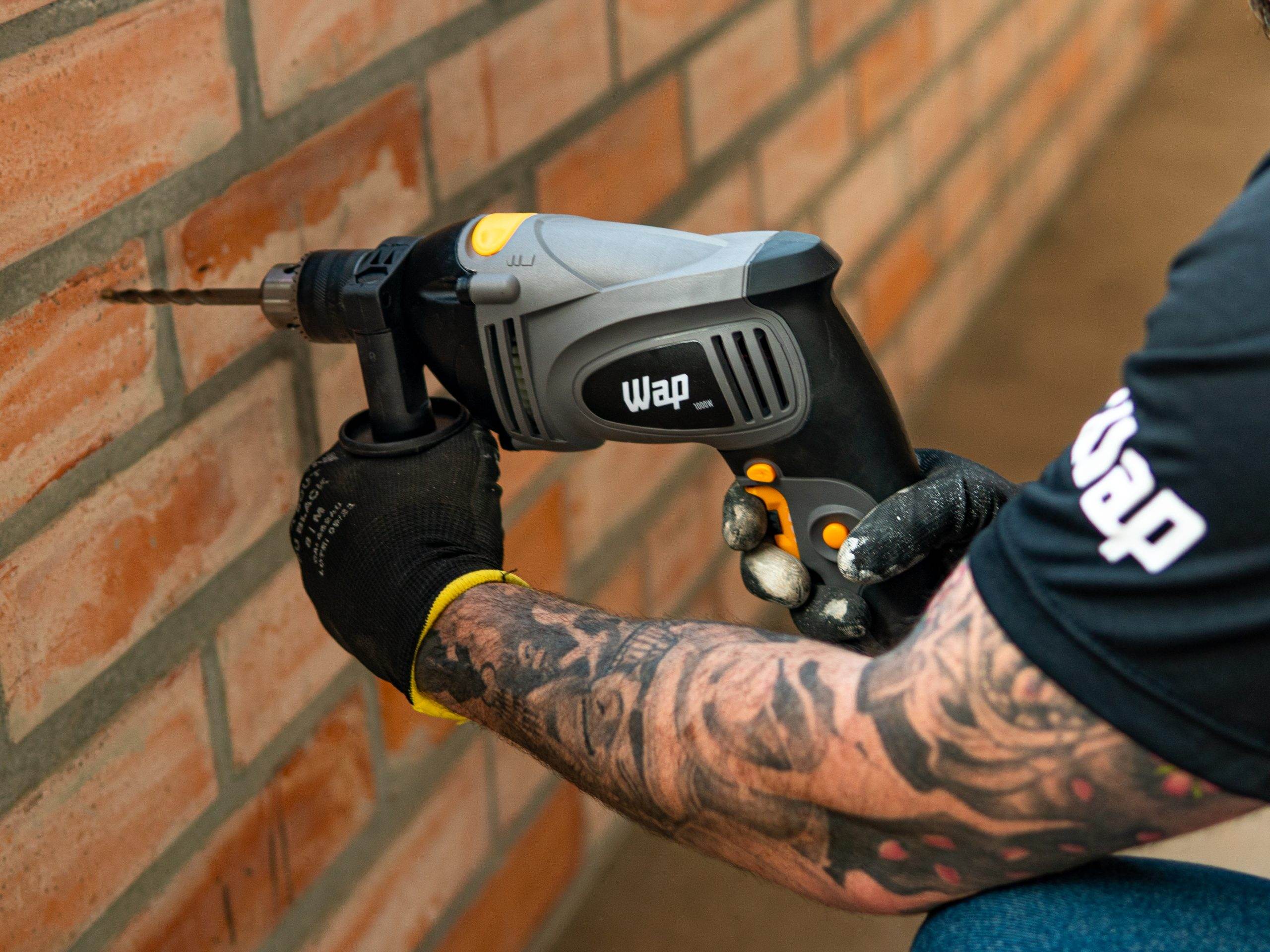 A WAP EFPI 1000 possui botão comutador que permite selecionar a função com ou sem impacto. Além disso, conta com limitador de profundidade métrico em metal, que serve para limitar a profundidade do furo, de acordo com a necessidade do usuário, executando perfurações de forma eficaz.