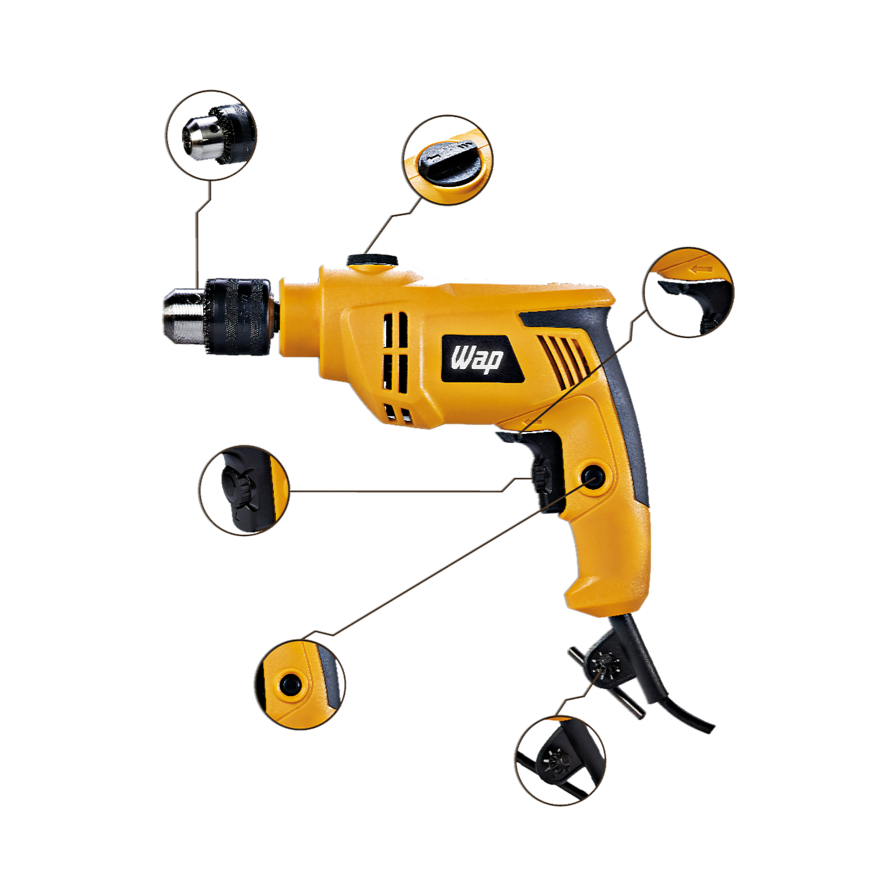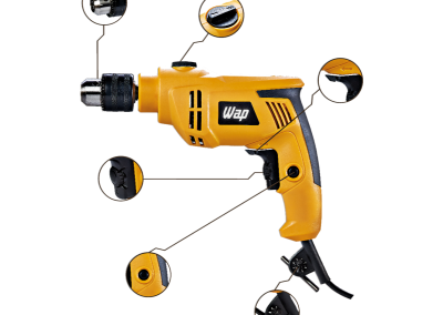 Com WAP EFI 600 com 600W de potência e mandril de ½” com capacidade para brocas de até 13 mm esta ferramenta oferece excelente capacidade de perfuração. A Parafusadeira Furadeira de Impacto WAP possui botão comutador que permite executar perfurações com ou sem impacto. Isso aumenta a versatilidade da ferramenta, que pode ser usada em serviços mais pesados. Na hora de realizar trabalhos contínuos, a Parafusadeira Furadeira de Impacto WAP é muito produtiva, pois vem com botão trava que elimina a necessidade de ficar pressionando o tempo todo o interruptor de acionamento do motor.