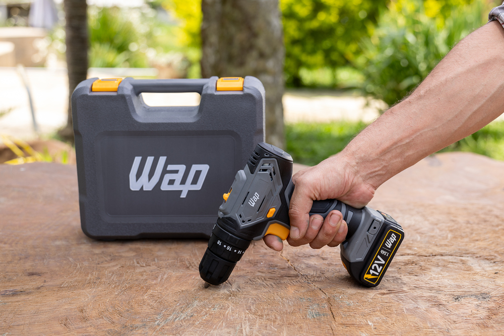 A ferramenta essencial para projetos e reformas com desempenho profissional, robustez e segurança. Transforme sua rotina unindo inteligência e tecnologia com a Parafusadeira e Furadeira de Impacto WAP 12V WF 12K4.2.