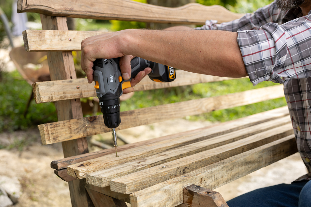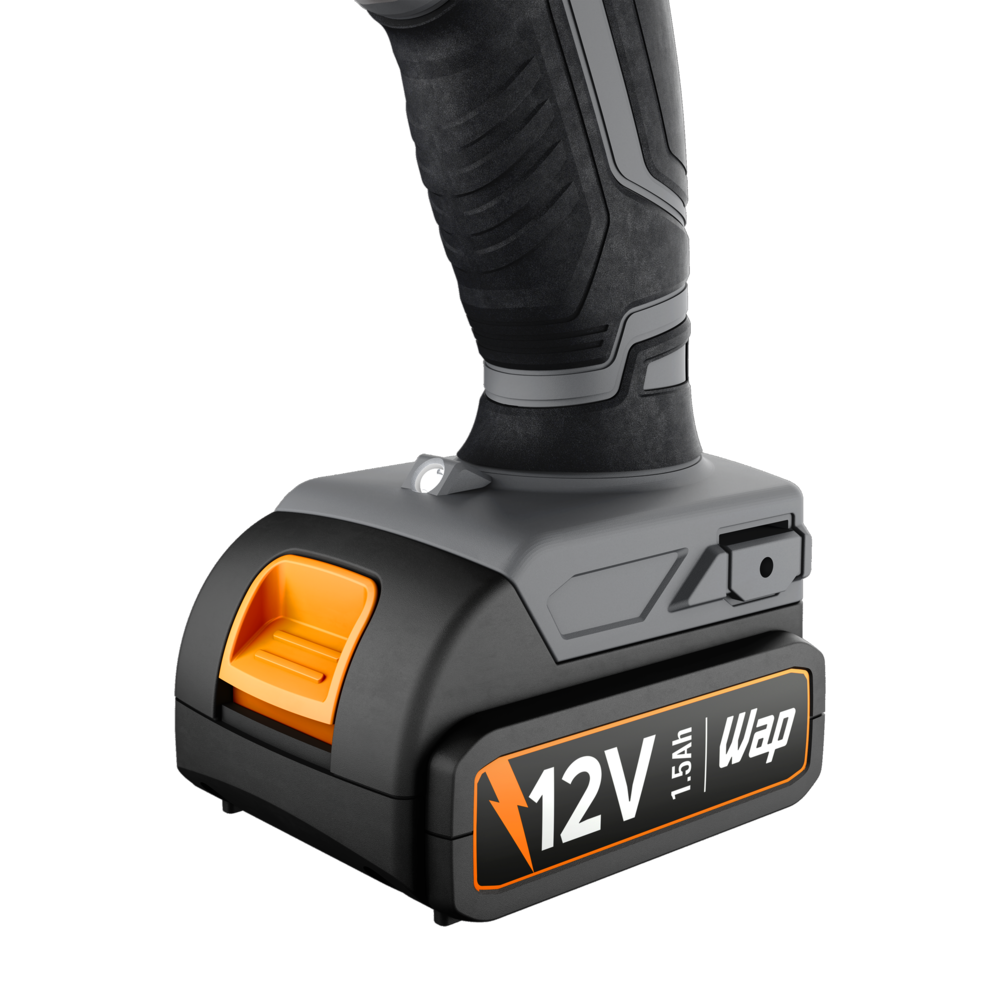 Evitando que a parafusadeira descarregue no meio de um projeto, ela acompanha uma bateria 12V de Lí-ion de 1.5Ah removível, que indica o nível de bateria em 30%, 60% e 100% com exatidão. As baterias de lítio possuem um sistema de proteção, que desligará a ferramenta automaticamente quando estiver descarregada.