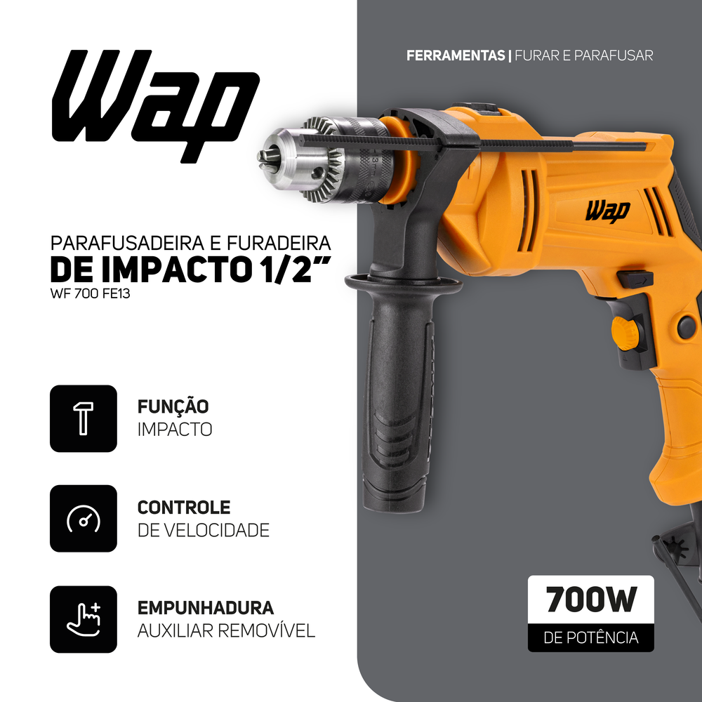 Furadeira e Parafusadeira De Impacto Com Fio WAP WF 700 FE13 220V