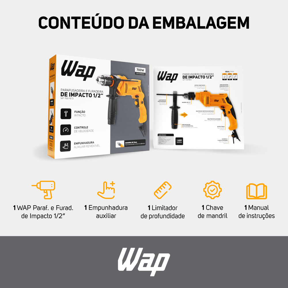 Parafusadeira e Furadeira de Impacto ½" 700W WAP WF 700 FE13 127V