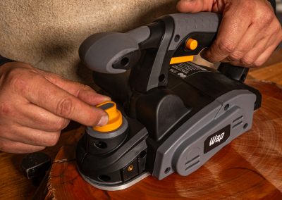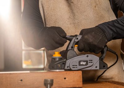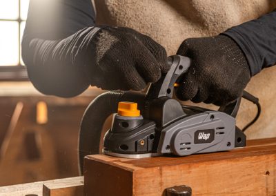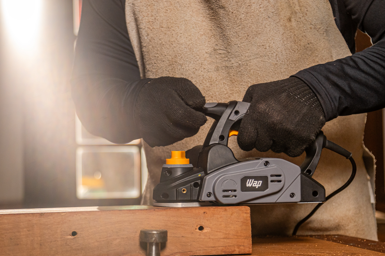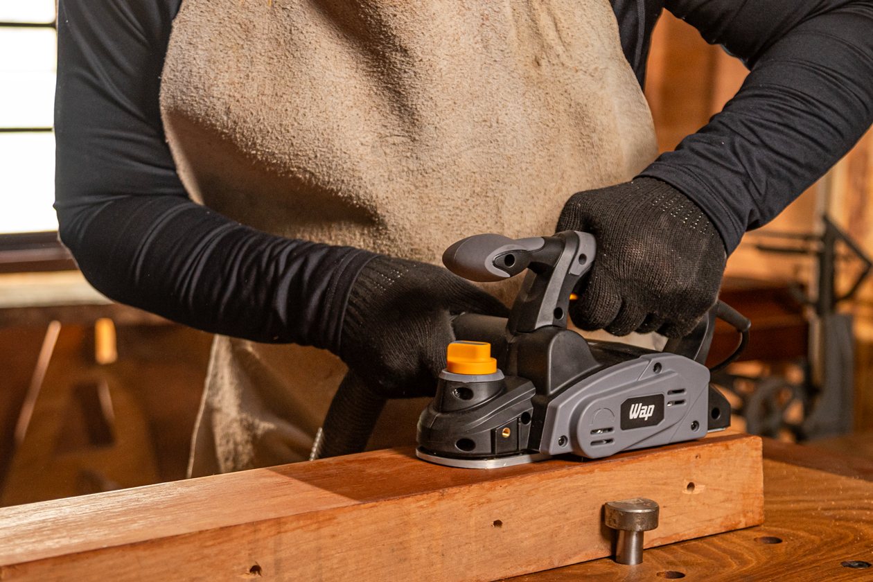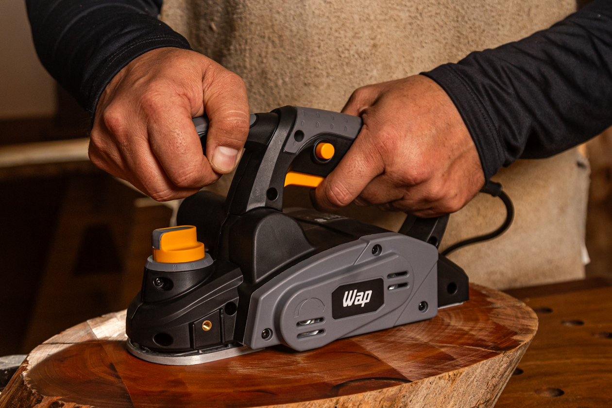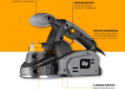 - Para maior segurança durante o uso, utilize a trava do gatilho da plaina elétrica WAP.