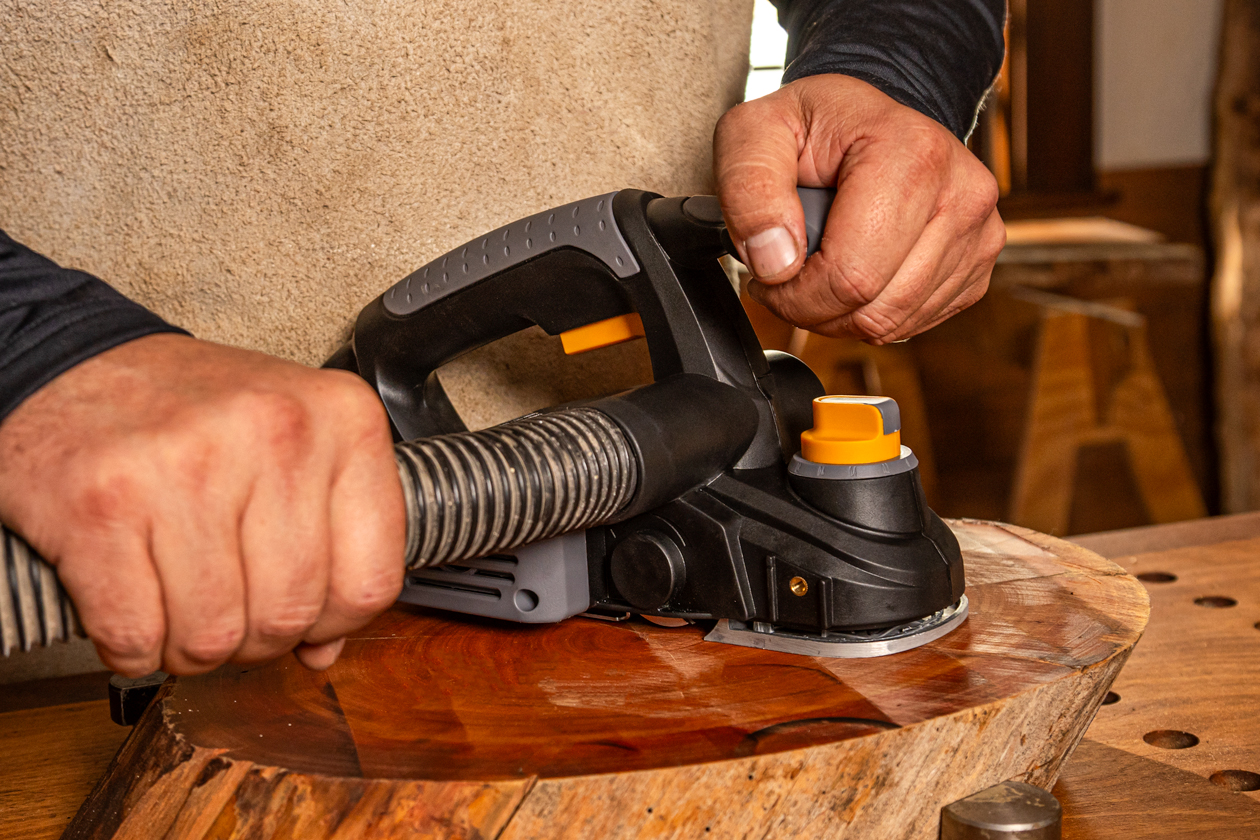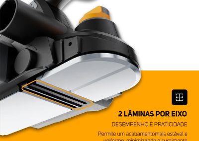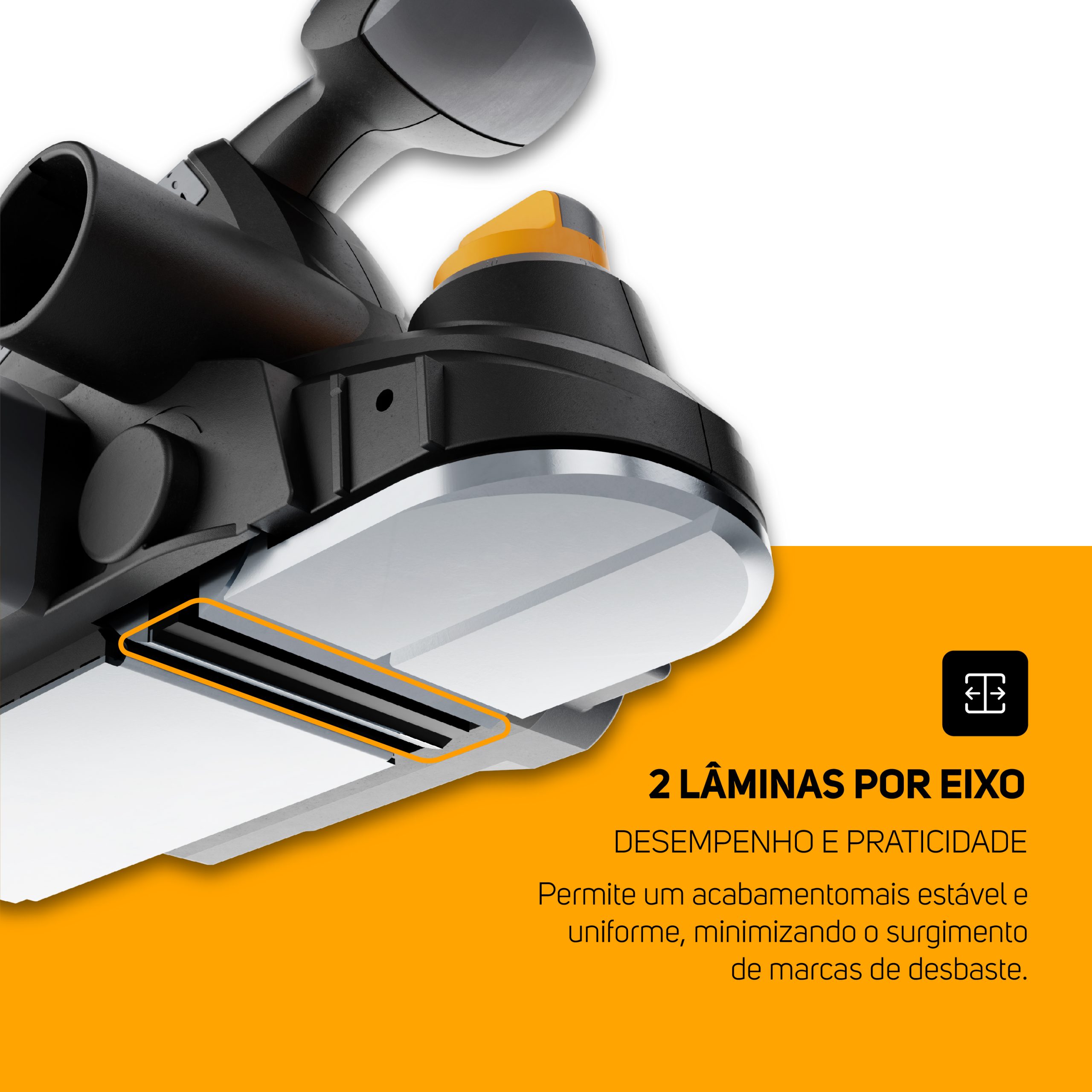 - Com 760W de potência, a plaina é ideal acabamento uniforme em diversos tipos de madeira.