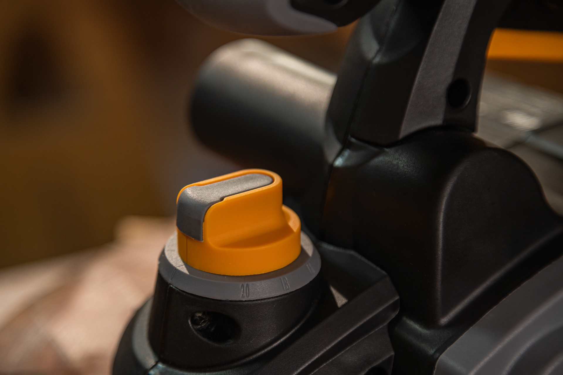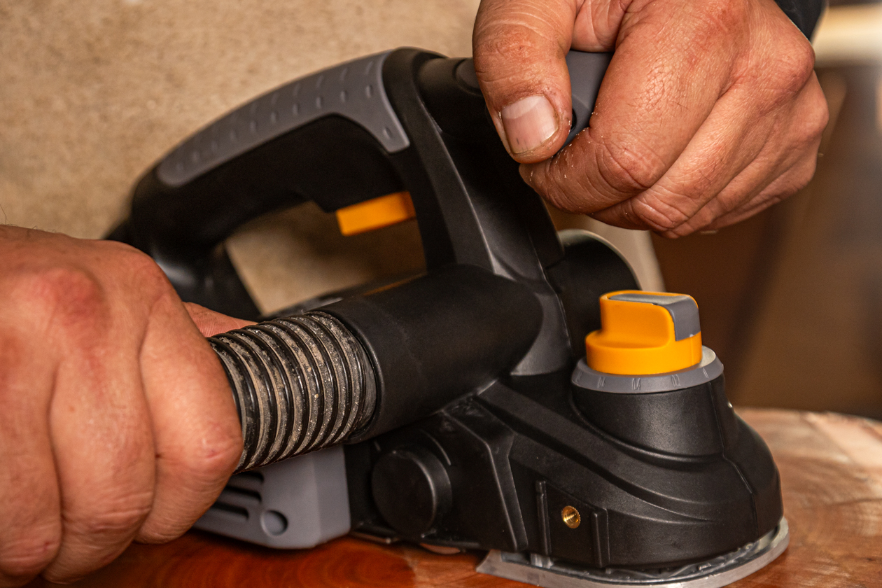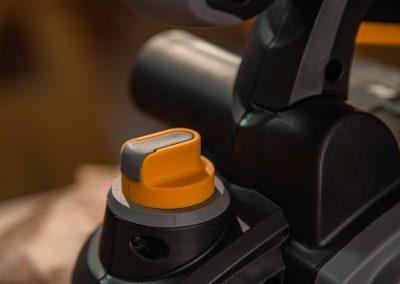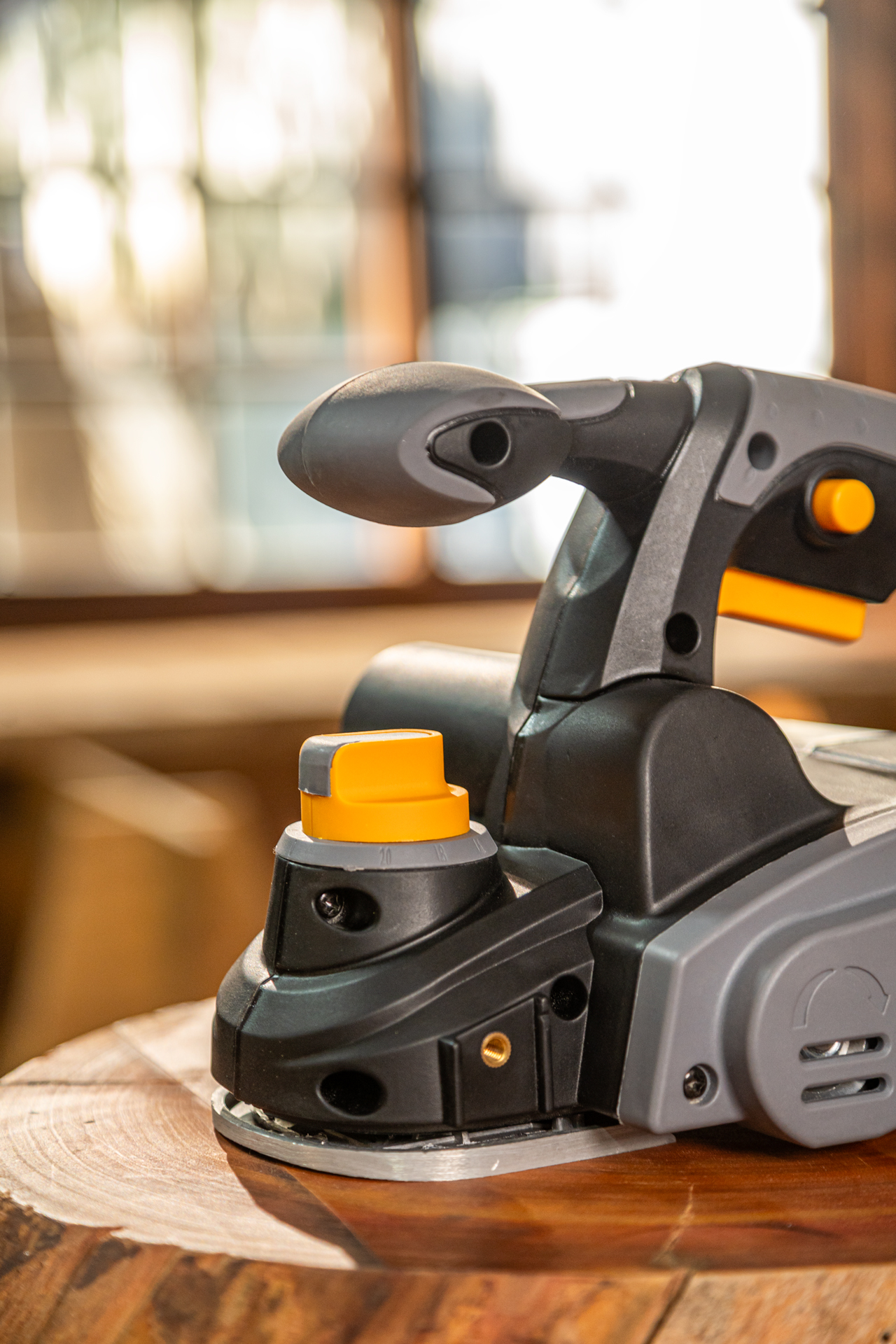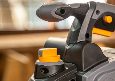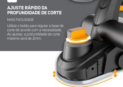 O botão de ajuste rápido de profundidade do corte da PLAINA ELÉTRICA WAP WF PE01 te coloca no controle total do projeto. Ao regular, a base irá se deslocar até 2mm para oferecer o corte ideal conforme sua necessidade. Ligue e desligue a ferramenta de maneira ágil com o gatilho, acessível durante o trabalho.