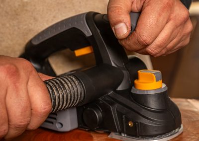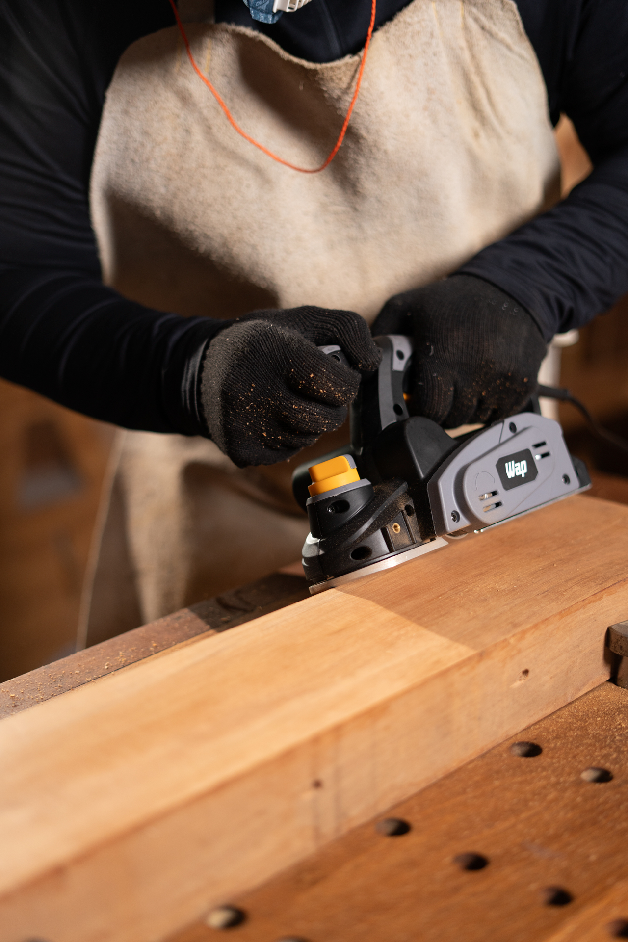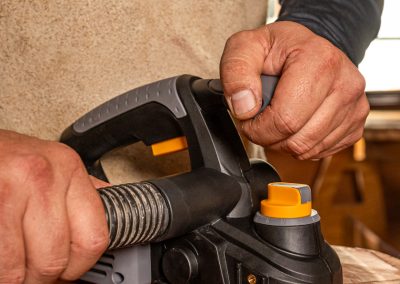 A plaina para madeira WAP equipada com duas lâminas por eixo, maximiza a eficiência das tarefas. Com cortes mais precisos e suaves, as lâminas removem o excesso de material da peça de forma eficaz, reduzindo a necessidade de retrabalho e facilitando suas tarefas com menos esforço.