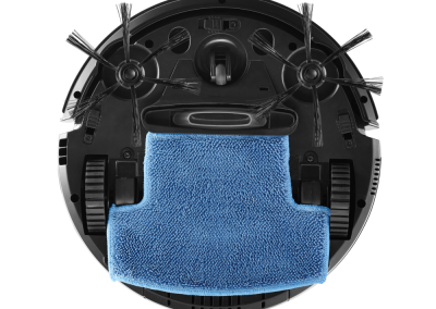 Possui três modos de limpeza que inclui cantos, limpeza aleatória e limpeza em espiral. Suas escovas laterais giratórias possuem grandes alcance possibilitando a limpeza de cantos com mais facilidade. O robô aspirador WAP ROBOT W100C conta com sensores infravermelho antiqueda e colisão, que redirecionam seu trajeto sempre que encontra qualquer obstáculo pela frente.