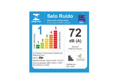 | NÍVEL DE RUÍDO: | 72 dB (A) |