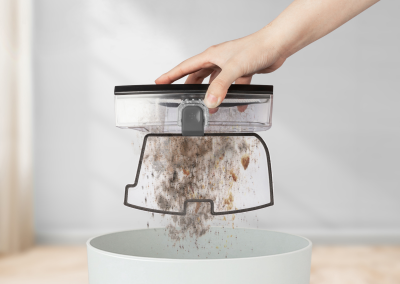 Seu reservatório possui capacidade para 450ml com coletor de pó lavável. Vem com filtro HEPA que retém ácaros e bactérias, sendo um grande aliado para quem sofre de alergias e doenças respiratórias. Possui também filtro HEPA e escova lateral de reposição, para substituir quando já estiverem saturados.