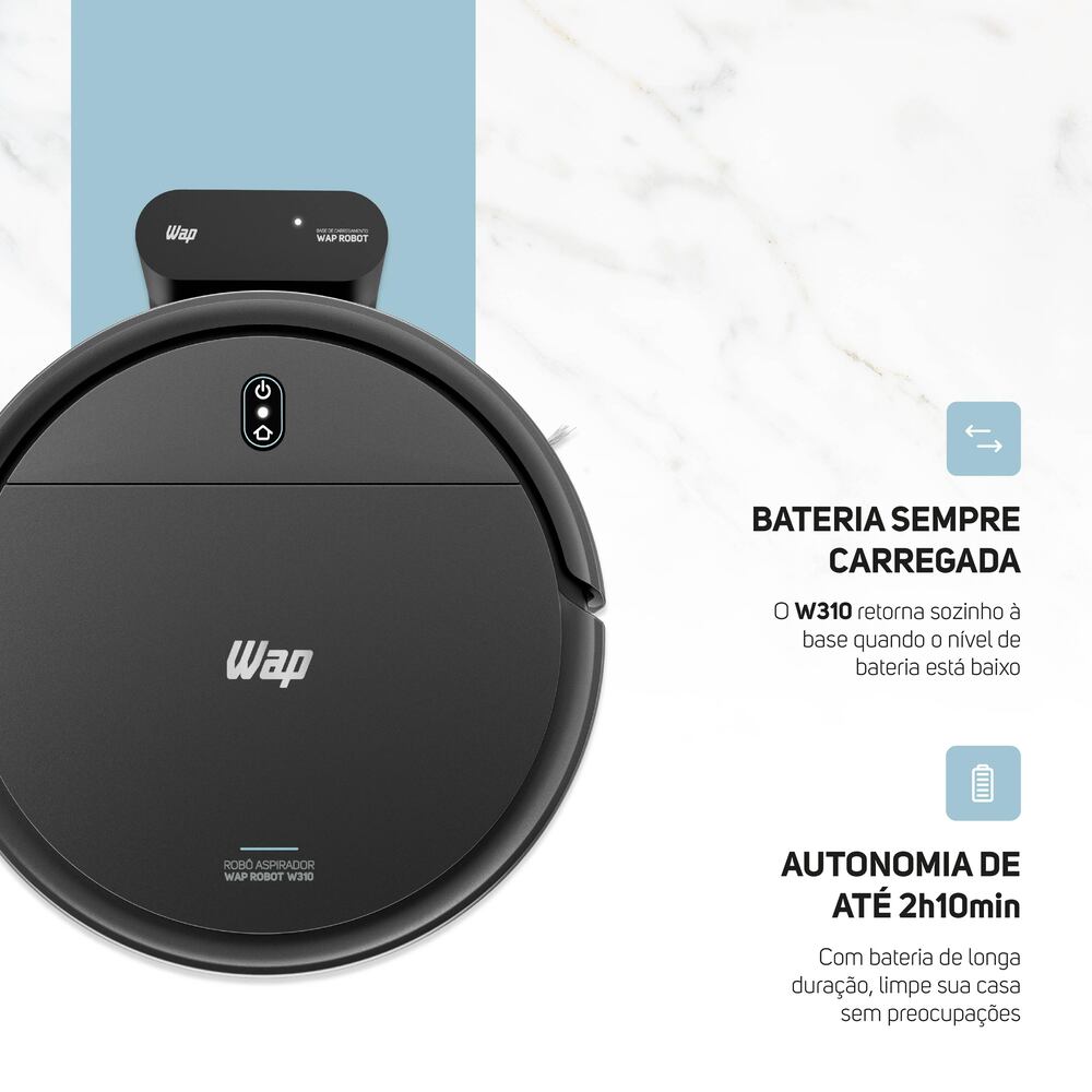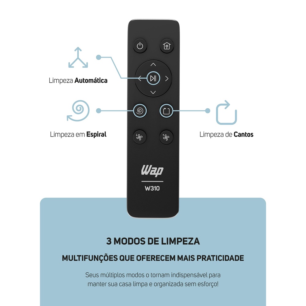 Robô Aspirador WAP ROBOT W310 Aspirador Robô 3 em 1 Com Base Carregadora Bivolt