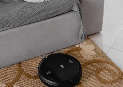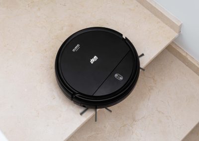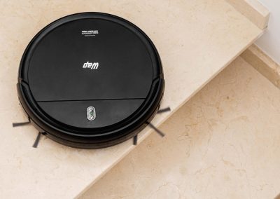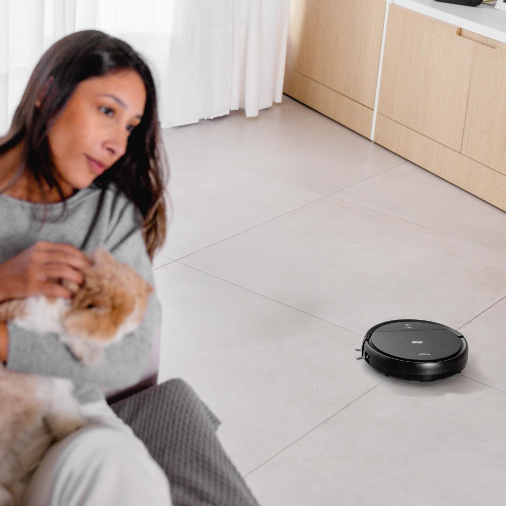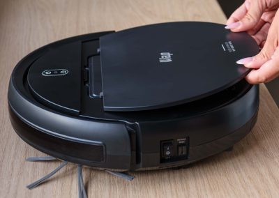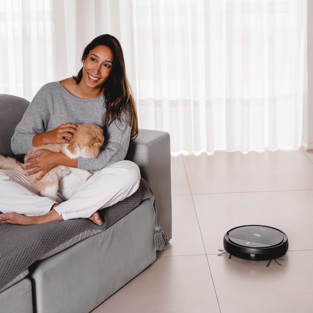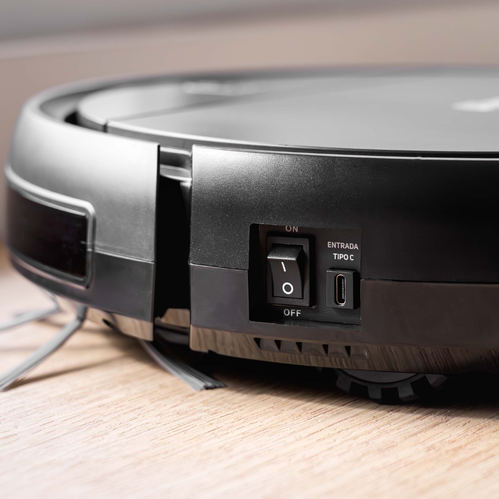 - Os três níveis de sucção do robô aspirador permitem realizar a sucção de poeiras finas e sujeiras maiores de forma eficiente.