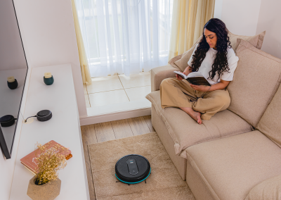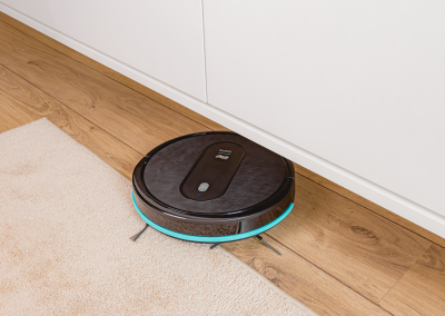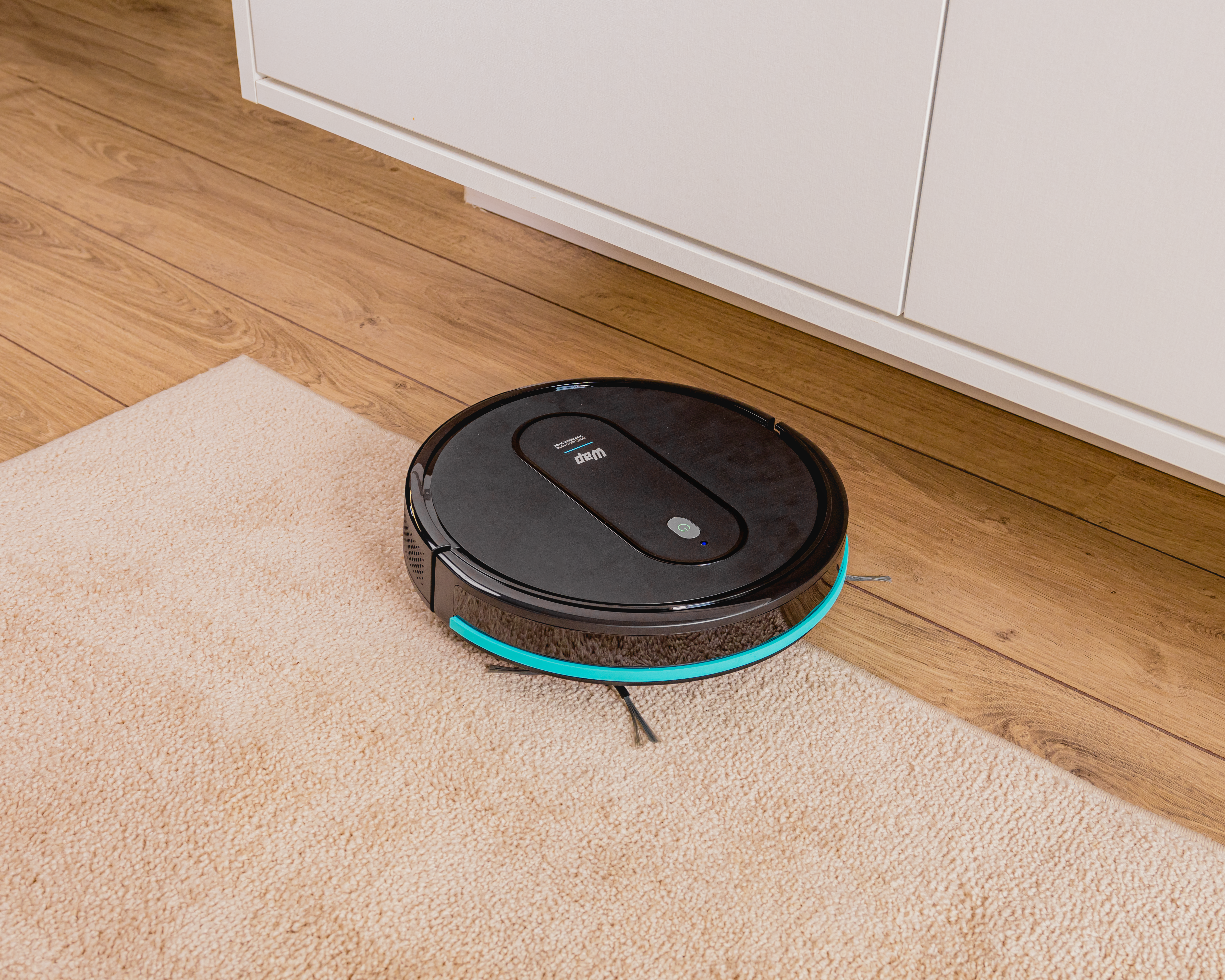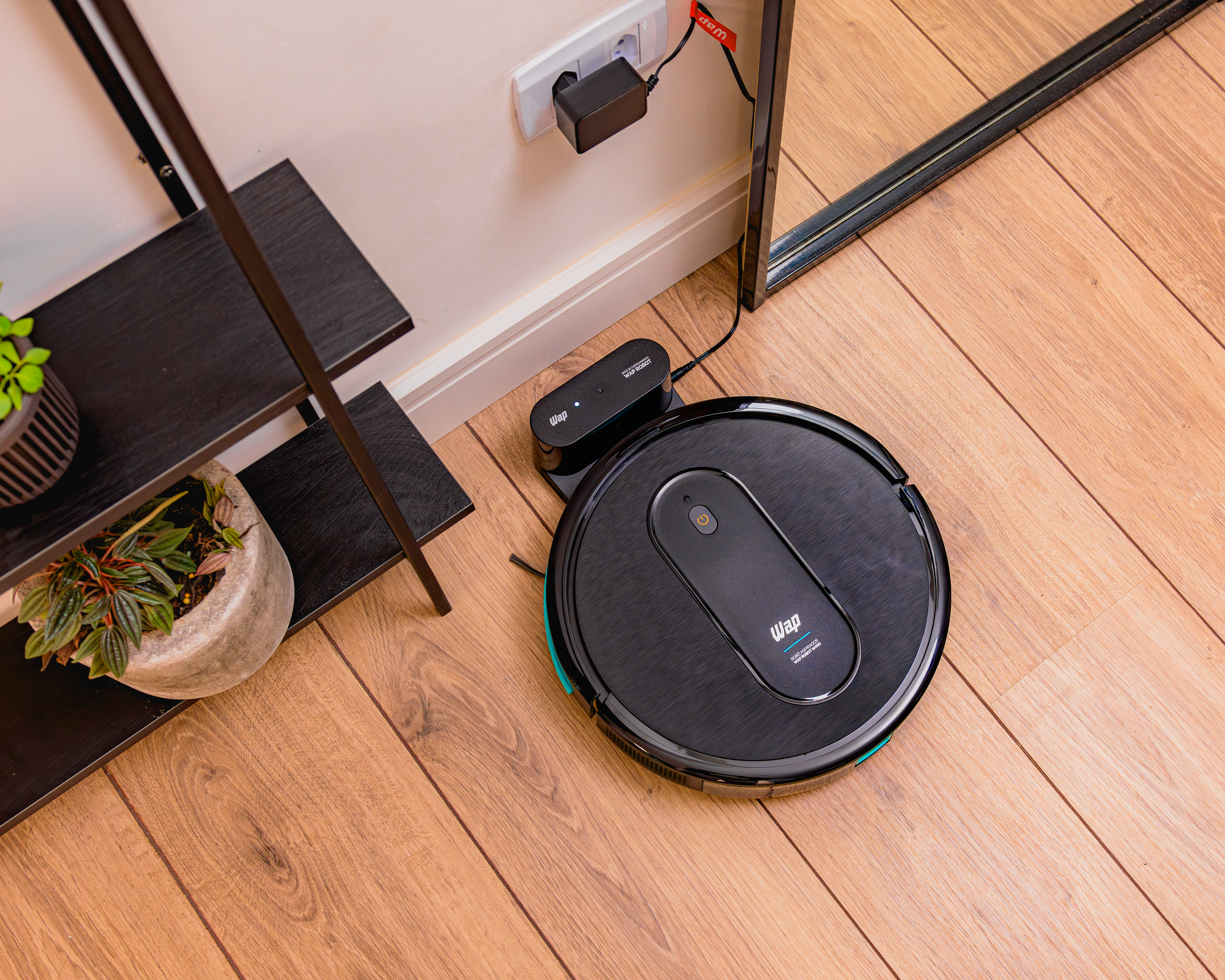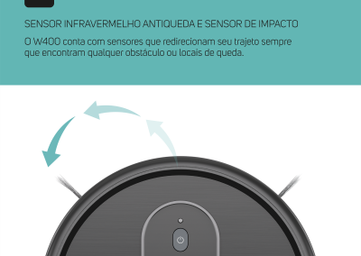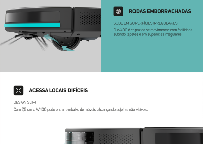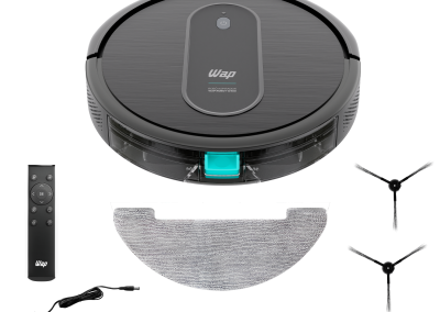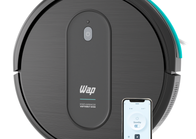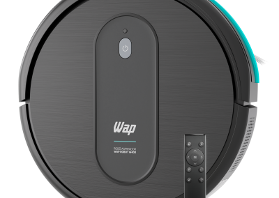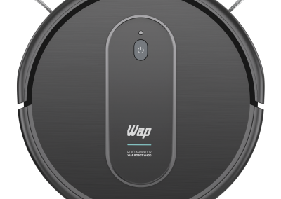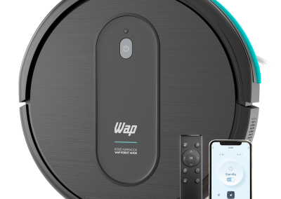 Com o Robô Aspirador WAP Robot W400 é como ter três produtos em um: varre, aspira e passa o pano, tudo sozinho e de um jeito inteligente. Seu tanque de água possui um controle eletrônico de gotejamento, que possibilita a regulagem precisa da umidade do MOP, utilizando a combinação perfeita de água e a Solução de Limpeza WAP.