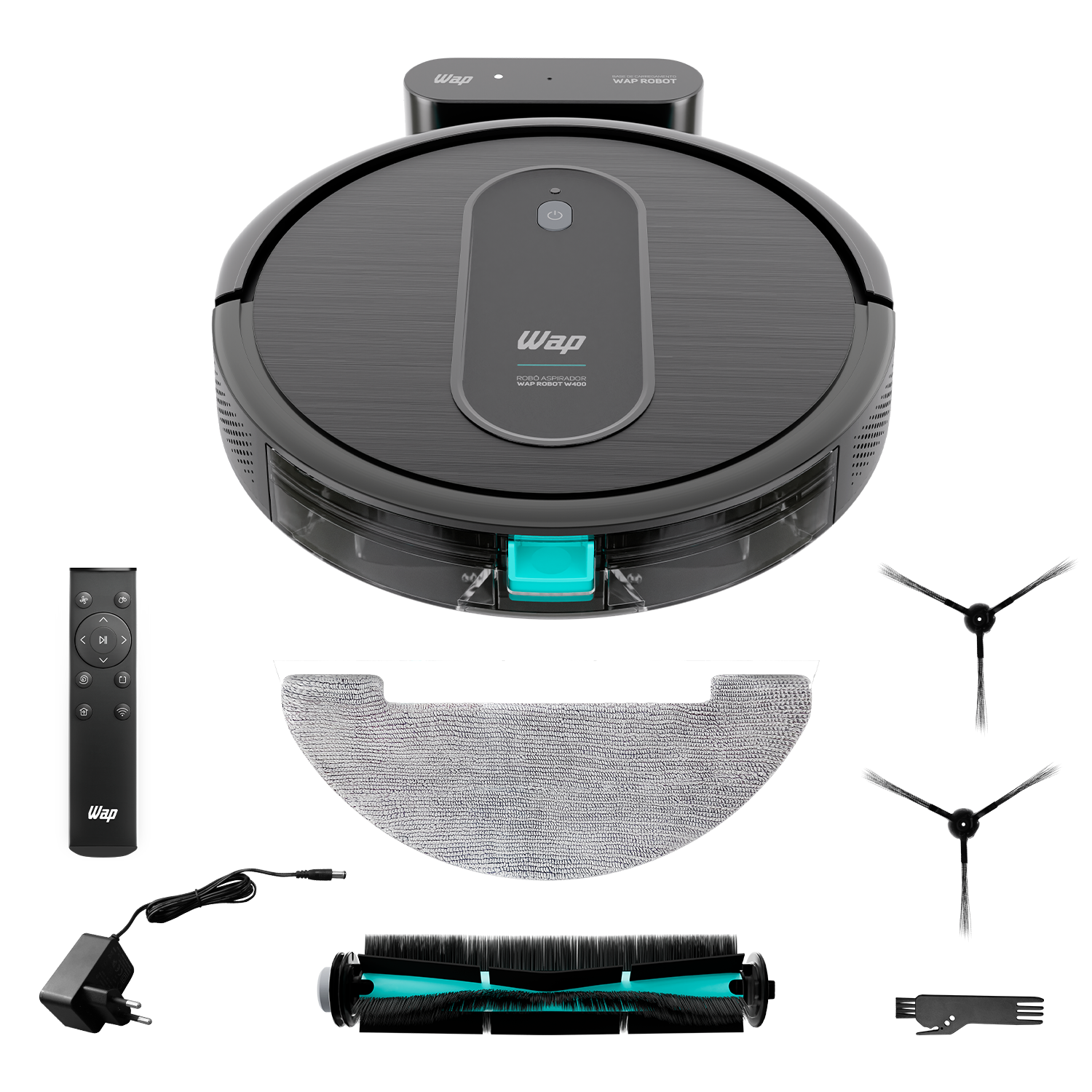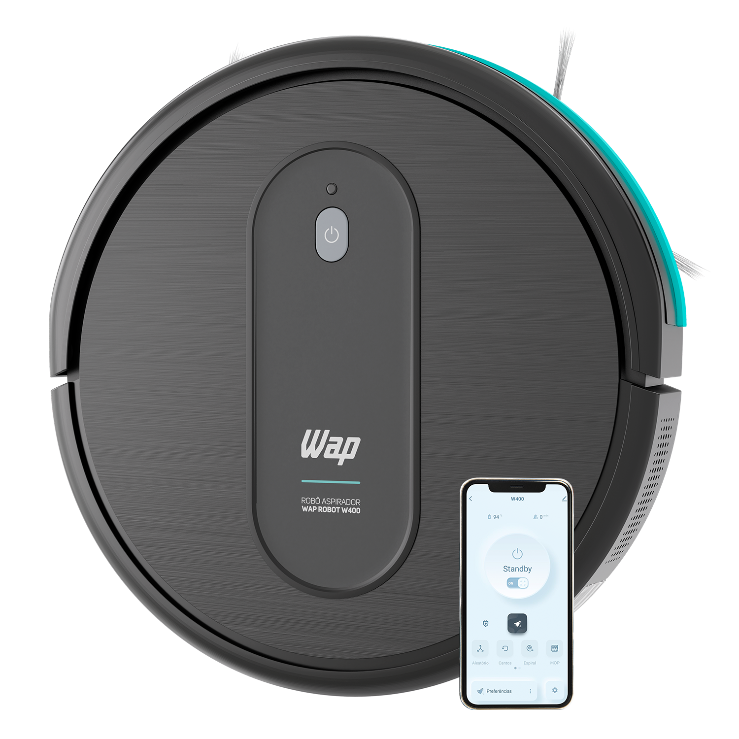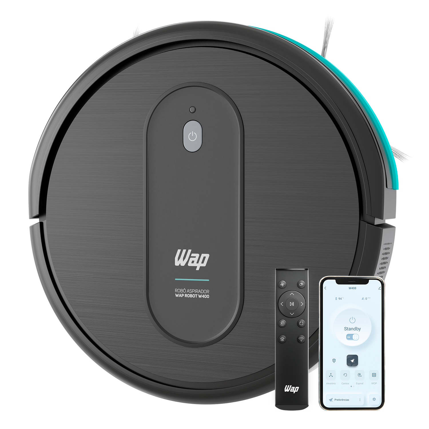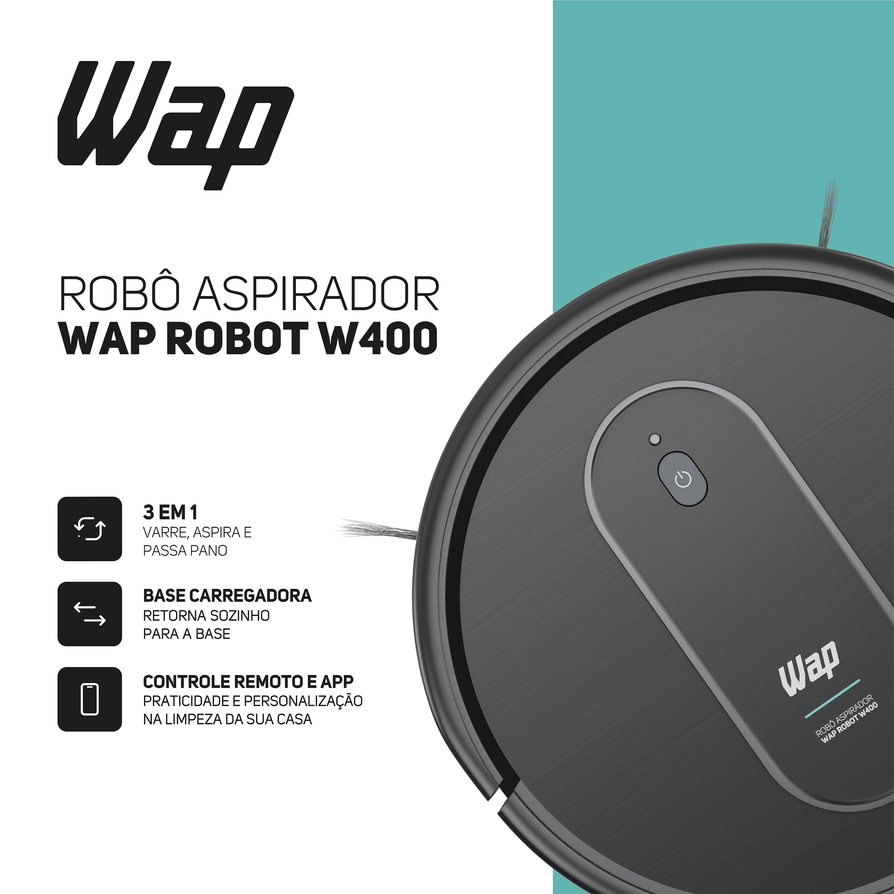 - Robô Aspirador de Pó WAP ROBOT W400 Varre Aspira e Passa Pano MOP com App Controle Remoto e Autorrecarga Bivolt