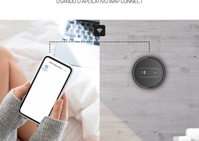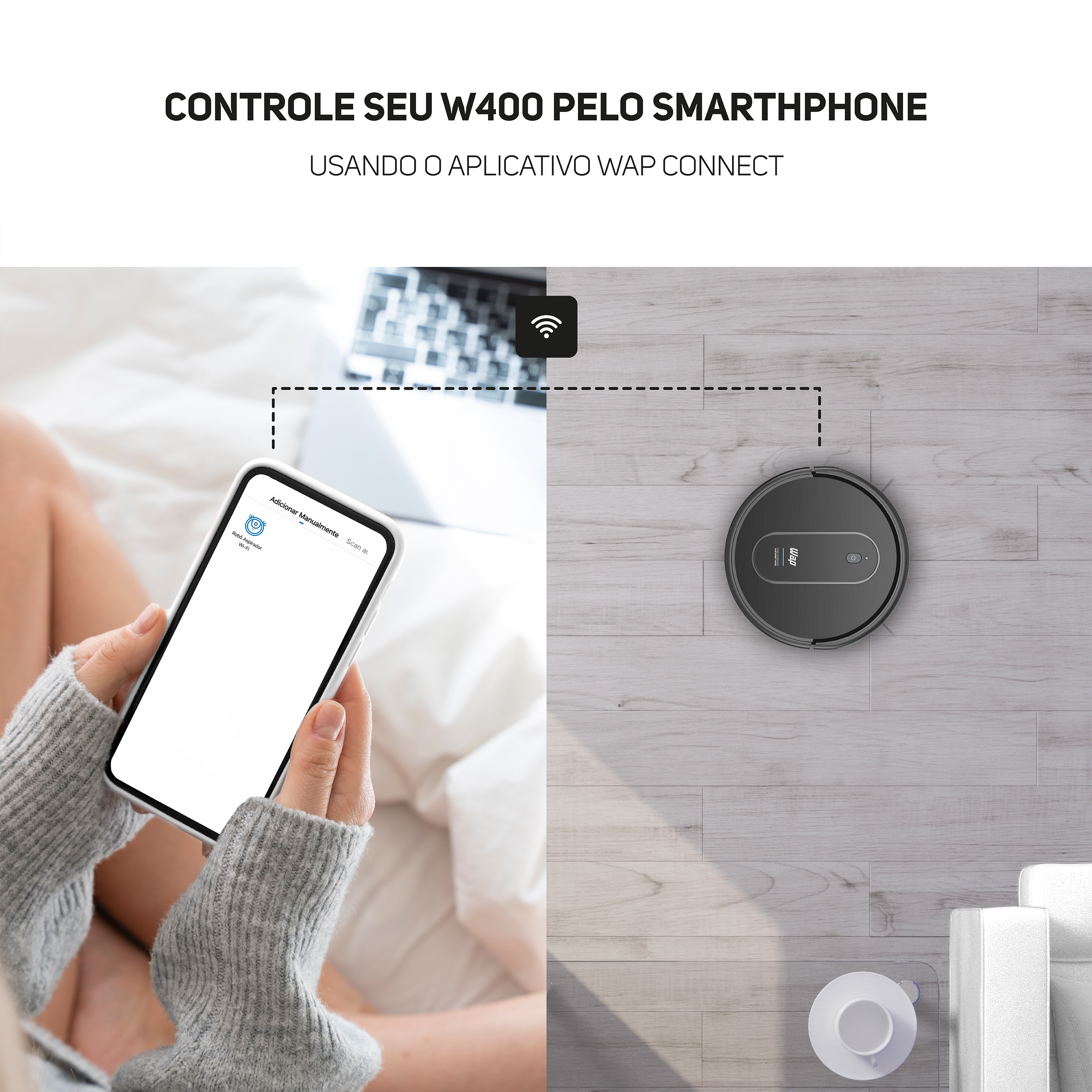 - Controle seu robô W400 e agende o horário da limpeza pelo celular smartphone através do aplicativo WAP CONNECT.