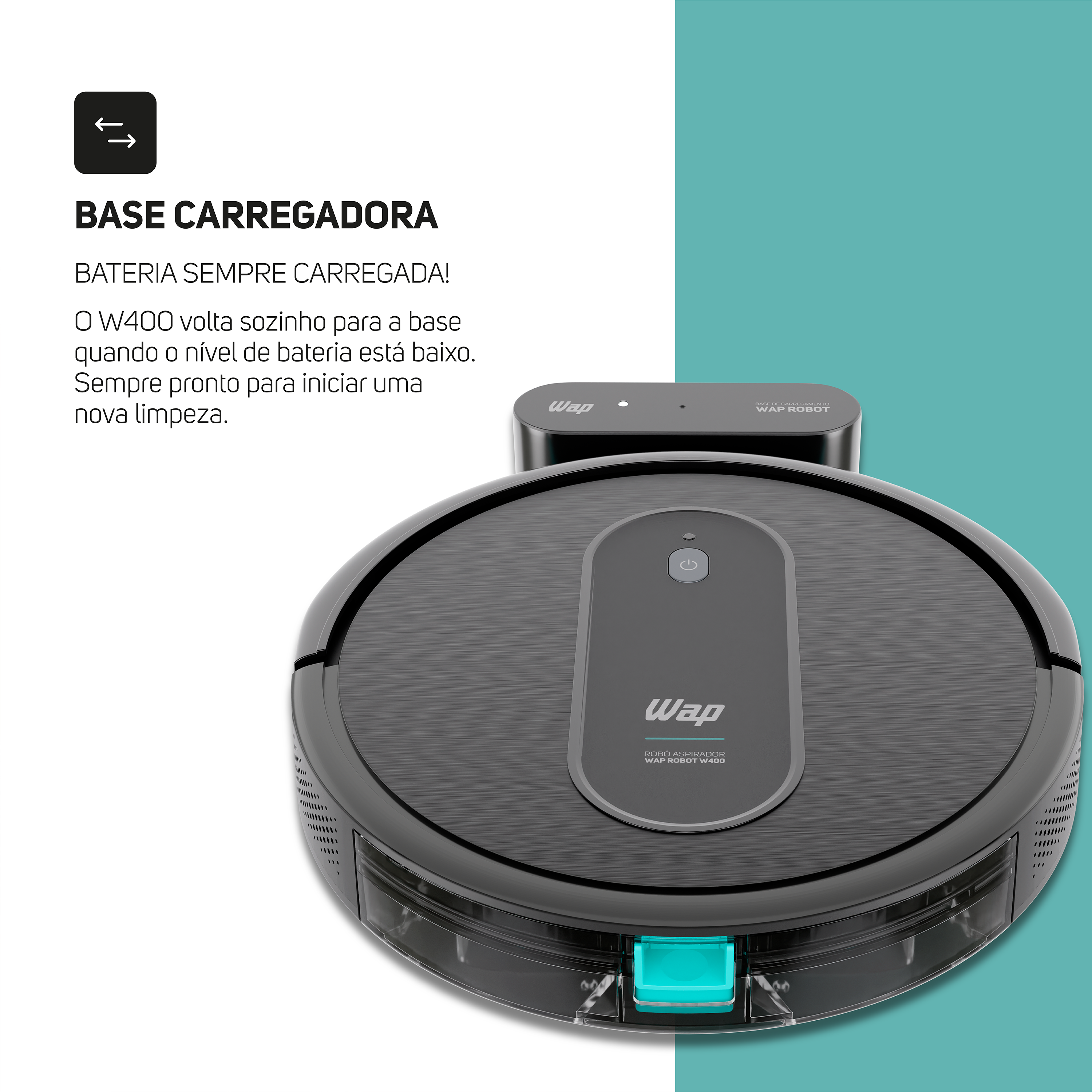 - Aspirador de Pó Robô WAP ROBOT W400 Varre Aspira e Passa Pano MOP Agenda Limpeza Controle Remoto e Autorrecarga Bivolt