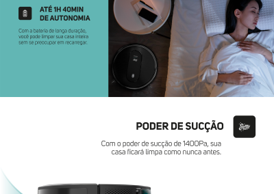 Apresentamos a combinação incrível entre alta tecnologia e eficiência máxima para manter sua casa sempre limpa, sem complicação! Com apenas um toque, você pode aspirar sua casa sem esforço nenhum.