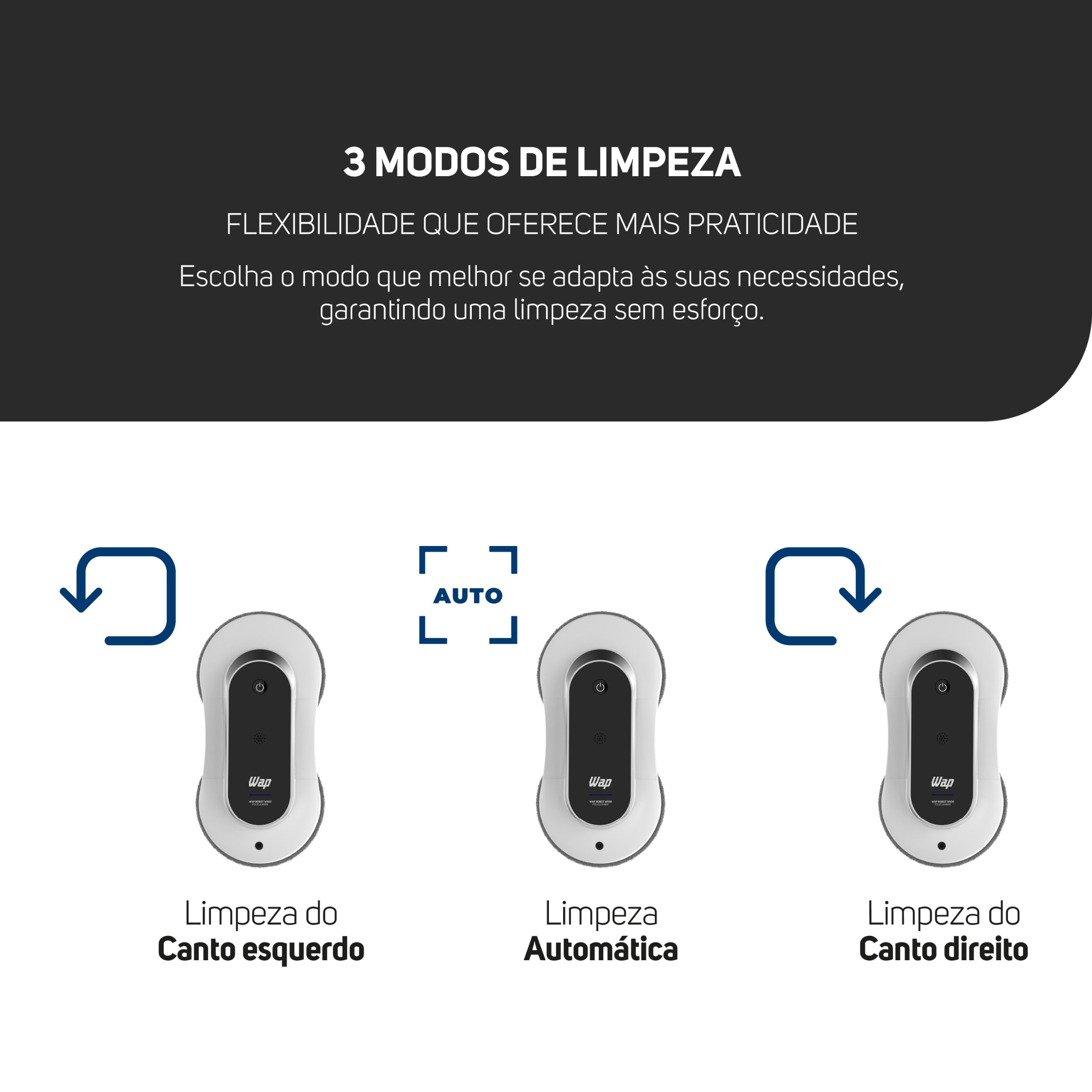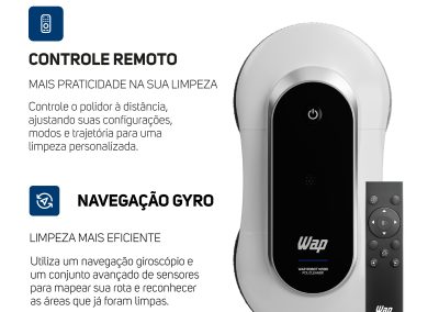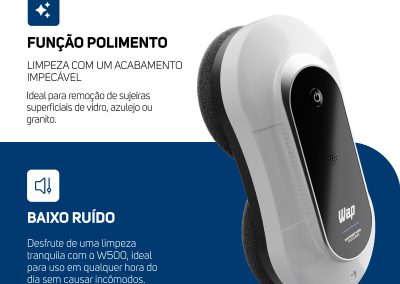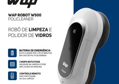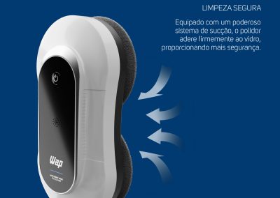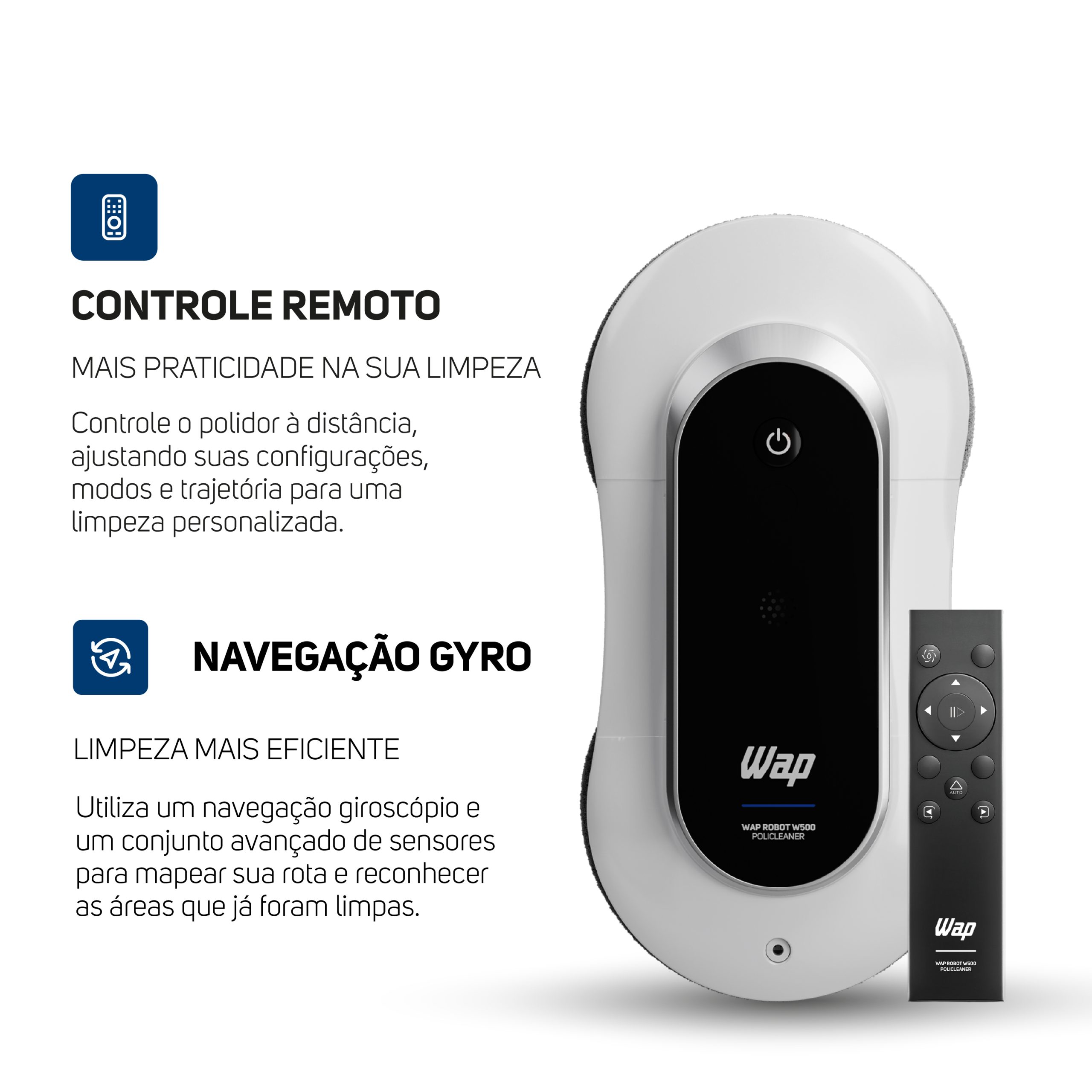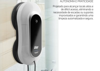 Aposte em inovação e praticidade para limpar vidros e janelas! O Robô de Limpeza WAP ROBOT W500 POLICLEANER oferece autonomia total e segurança, alcançando os lugares mais altos e difíceis, transformando sua rotina com mais liberdade.