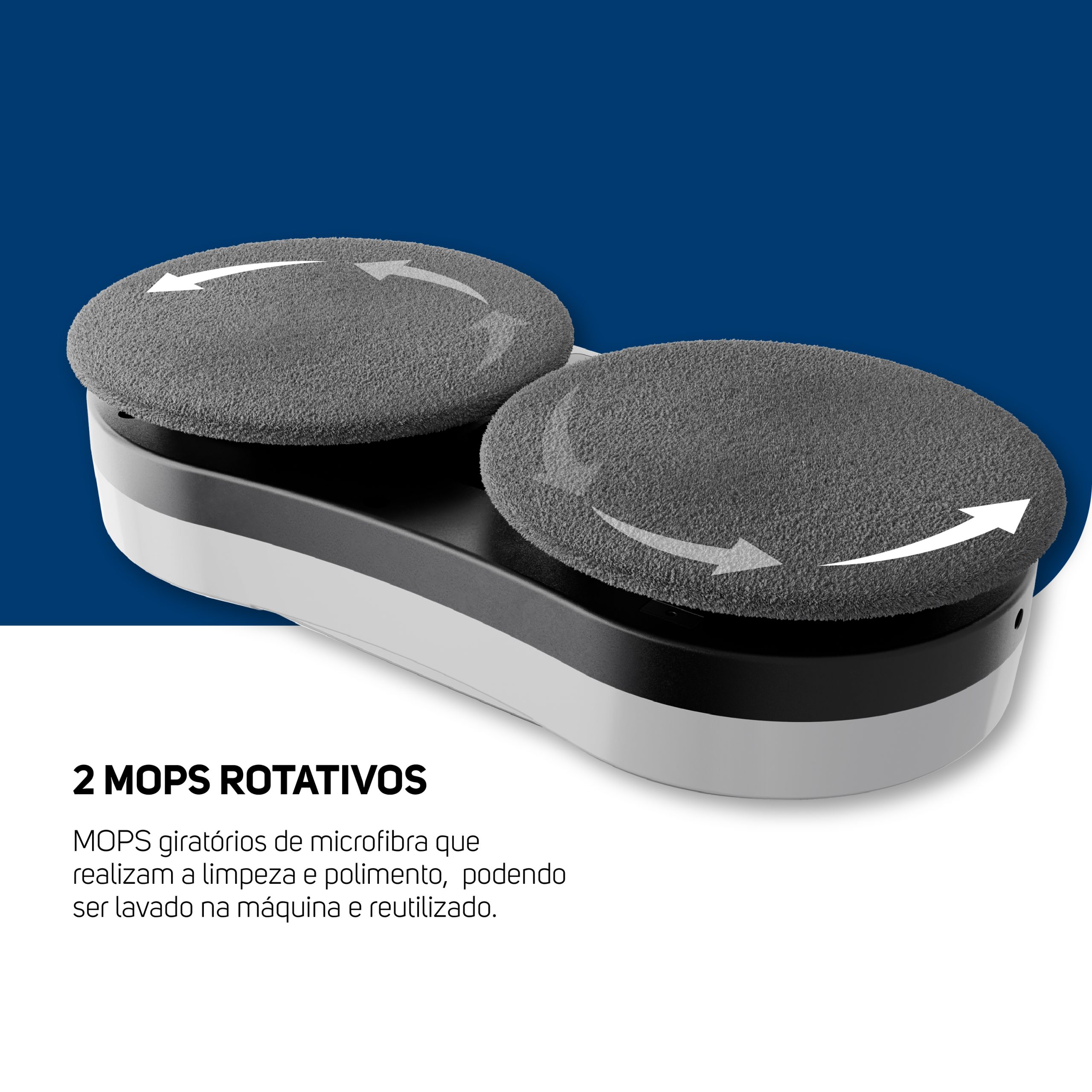 - Dois mops rotativos para uma limpeza mais eficiente e completa.