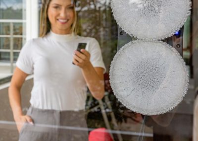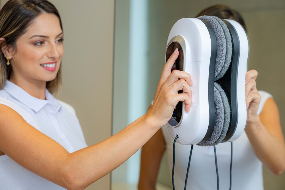 Além de eliminar o uso de escadas ou suportes improvisados, o robô de limpeza garante a realização das tarefas de forma automática e segura. Seu poderoso sistema de sucção adere firmemente a vidros, azulejos ou granitos, enquanto a função polimento remove sujeiras superficiais das áreas com facilidade.
