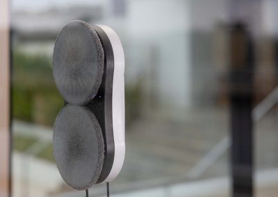 - Projetado para aderir firmemente a vidros na posição vertical, o robô garante movimentos precisos para um polimento eficaz.