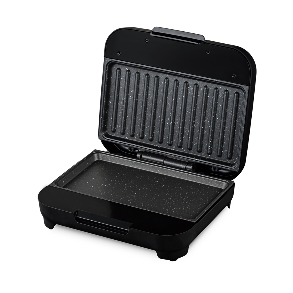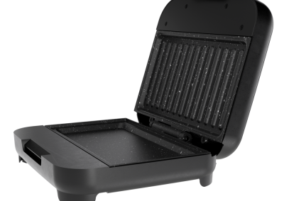 - Pés antiderrapantes garantem estabilidade e segurança enquanto a sanduicheira está em uso.