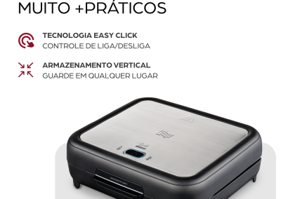 Simples, mas essencial na rotina, o botão liga/desliga conta com a tecnologia Easy Click, que permite iniciar ou interromper o preparo sem precisar desconectar o produto da tomada. E para guiar o ponto certo das receitas, o LED indicador mostra quando ela está pronta para uso.