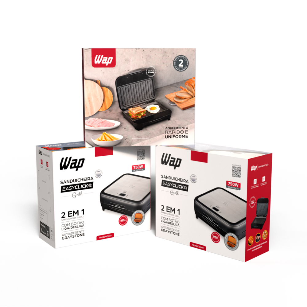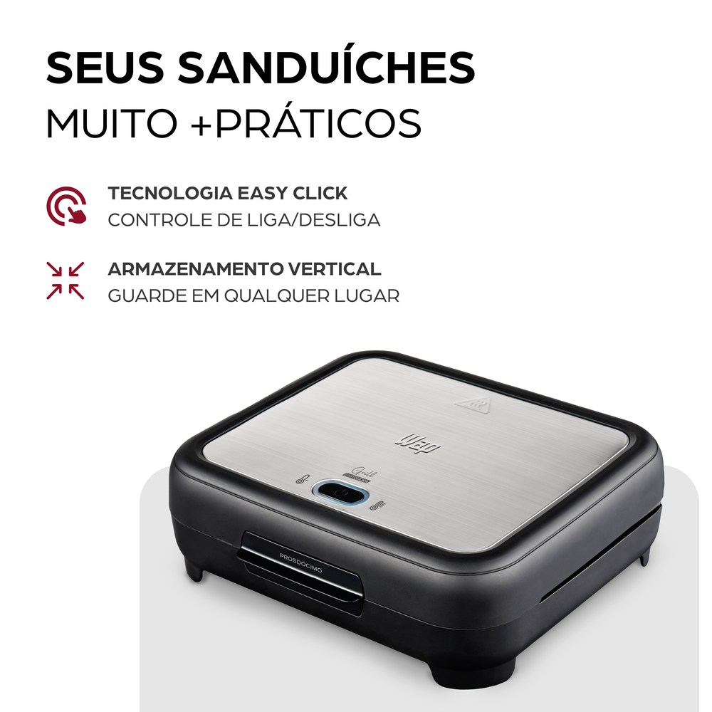 Esqueça a ideia de usar sua sanduicheira só para o clássico misto-quente! Experimente grelhar carnes e ovos utilizando a WAP SANDUICHEIRA EASY CLICK GRILL PROSDÓCIMO WSC750 com rapidez e sem bagunça.