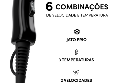Com três temperaturas e duas velocidades, é só ajustar a secagem conforme o tipo de fio ou a finalização desejada. Tudo isso em um secador leve e fácil de usar. Pensada simplifica a limpeza, a grade removível evita o acúmulo de umidade, prolongando a vida útil do produto.