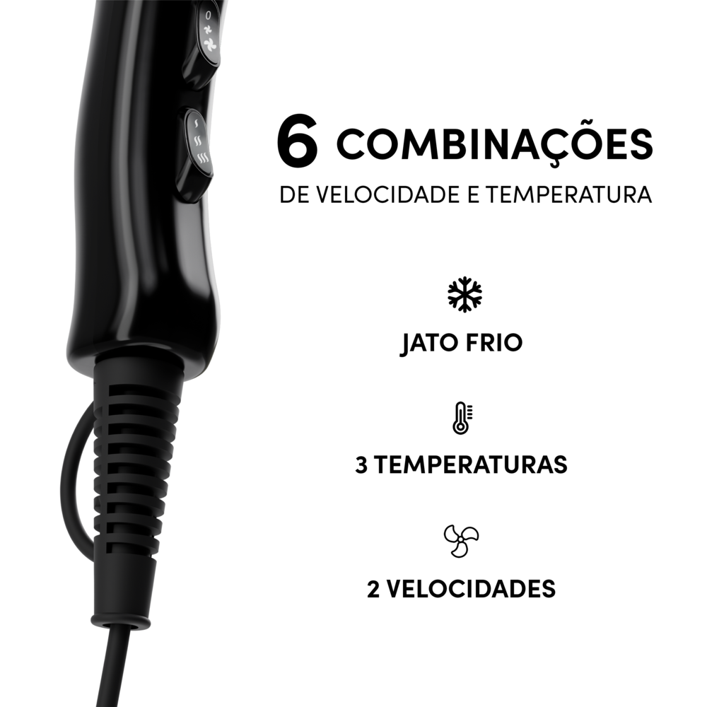 - Botão jato frio que ajuda a fixar o penteado com brilho e menos frizz.