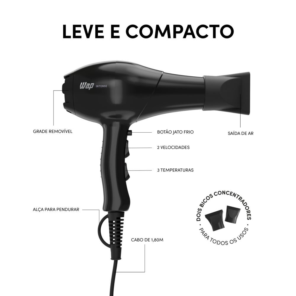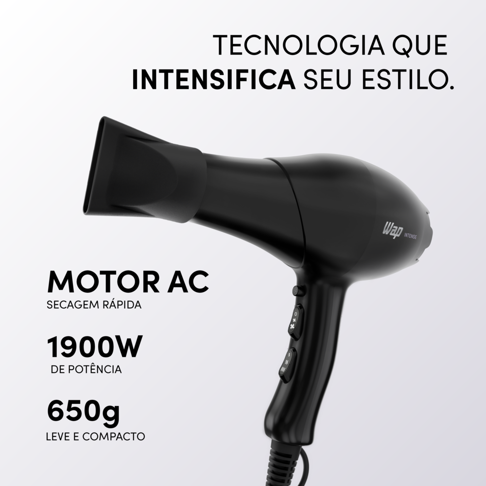 Secador de Cabelo WAP Intense AC WS1900 Preto 1900W Com Motor AC E 3 Temperaturas 220V