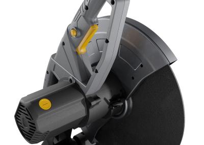 Reconhecida por seu desempenho, o equipamento não só oferece alta potência como prioriza segurança. Além da empunhadura extra, seu botão duplo, que evita acionamentos acidentais, e o protetor metálico protege a prática de corte dos profissionais em projetos de médio e grande porte.