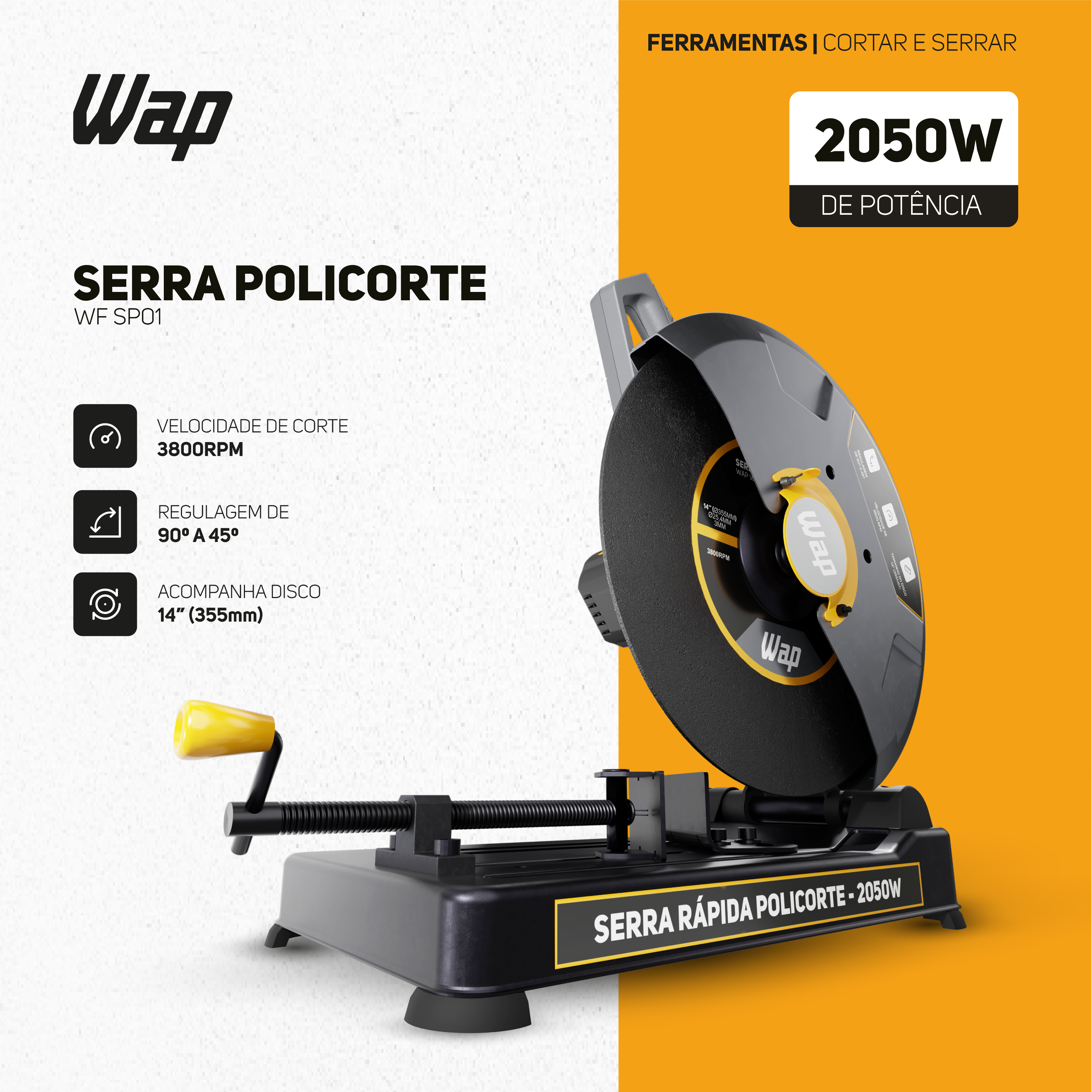 Descubra a Serra Policorte WAP WF SP01: uma ferramenta de alta qualidade, projetada para realizar cortes precisos em diversos metais, com facilidade e segurança em cada corte.
