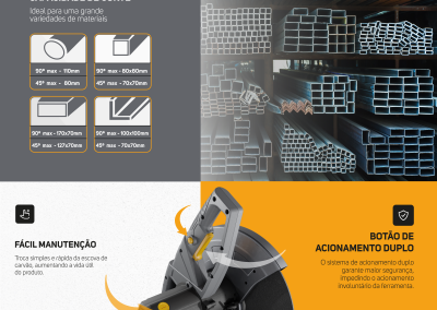 Ajuste com facilidade o corte de tubos, barras e perfis de até um diâmetro máximo de 127mm, com alta potência. Para transportar sua ferramenta, a corrente de trava auxilia no armazenamento em espaços pequenos, tornando sua experiência ainda mais prática.