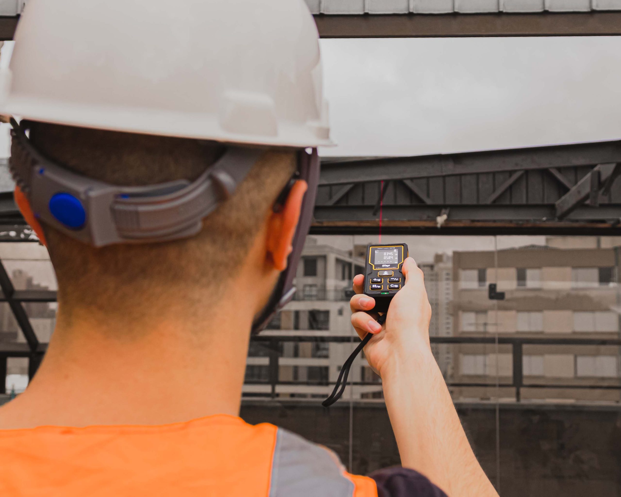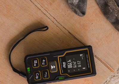 Com design compacto e portátil, o medidor de distância a laser acompanha cordão para pulso, que oferece mais segurança durante o uso. Sua estrutura é resistente a pó, terra, água, e a impactos baixos.