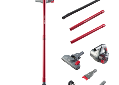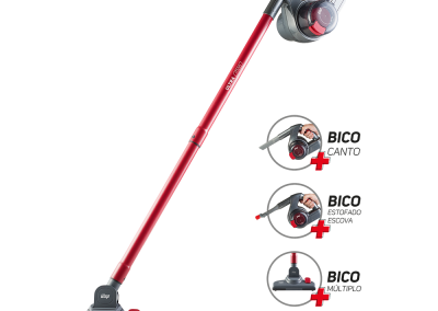 O produto vem equipado com o bico múltiplo de 180°, bico escova e bico canto que facilitam a limpeza de cantos e embaixo de móveis. Além disso, também acompanham o aspirador 2 extensões em alumínio que aumentam o seu alcance e proporcionam mais conforto no uso.