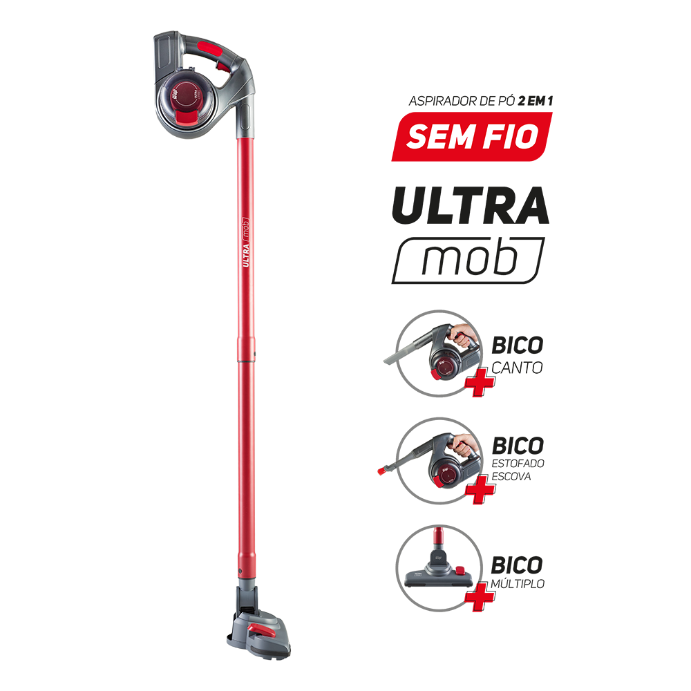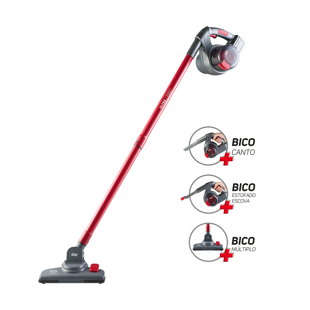 Esqueça cabos, tomadas e extensões. Com design inovador, o aspirador de pó vertical WAP ULTRA MOB 2 em 1 pode ser usado como aspirador vertical ou como aspirador de mão, sendo o equipamento mais indicado para quem quer ter autonomia e mobilidade na hora da limpeza.