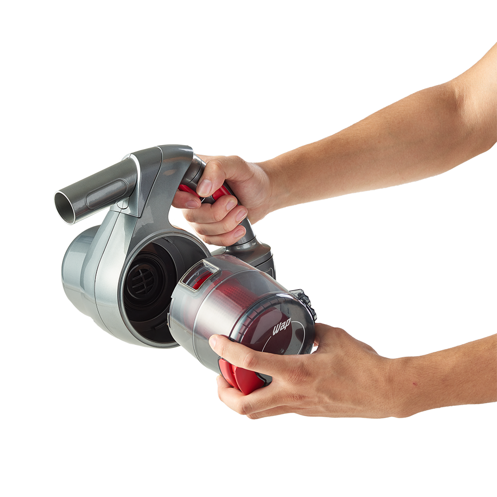 Para oferecer ainda mais mobilidade, pode ser transformado em um aspirador de mão portátil. Com o uso da mangueira extensiva você consegue limpar locais de difícil acesso como armários e prateleiras.