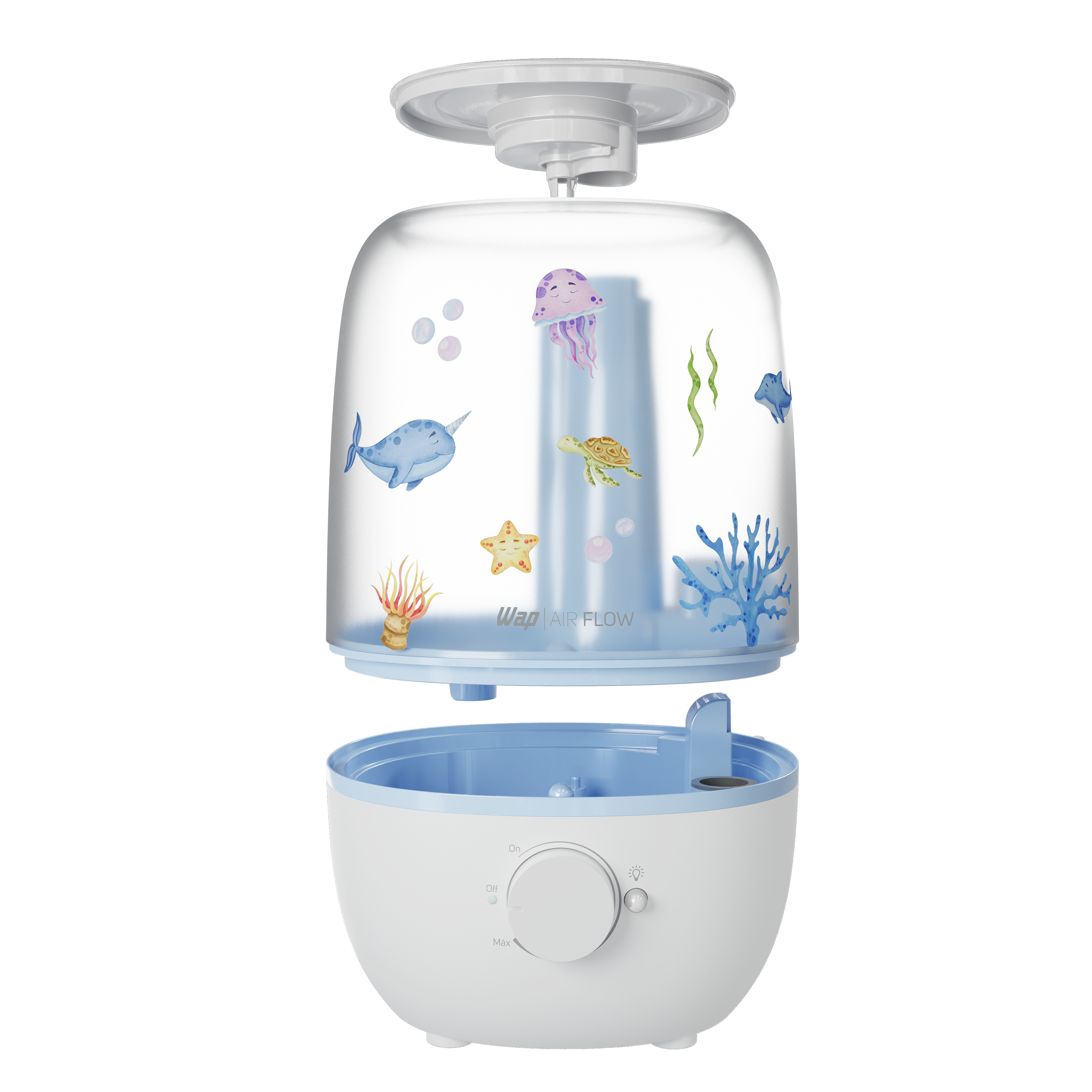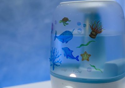 - Dê asas à imaginação! O AIR FLOW acompanha adesivos destacáveis com a temática do fundo do mar para decorar sua superfície como quiser.