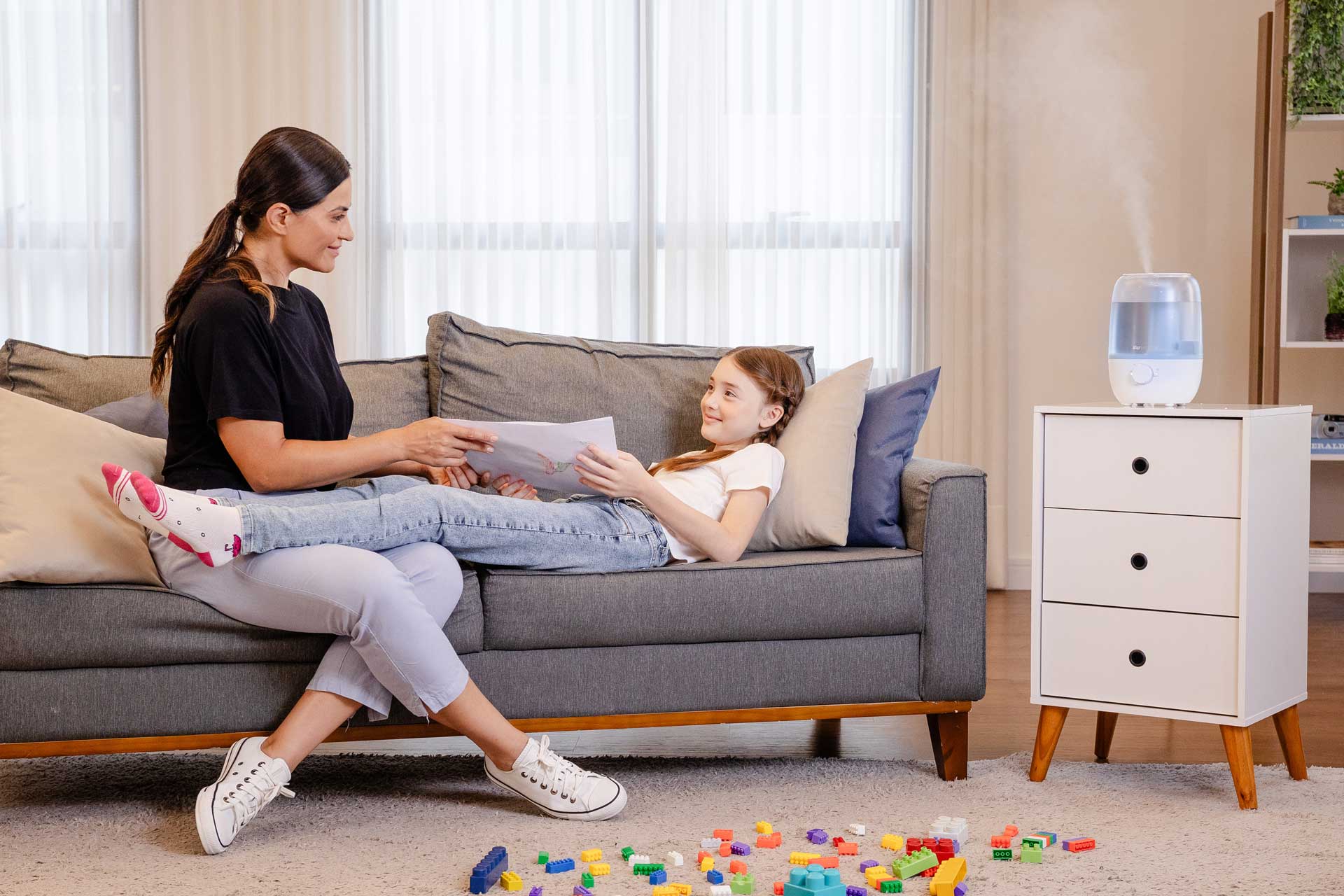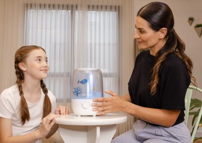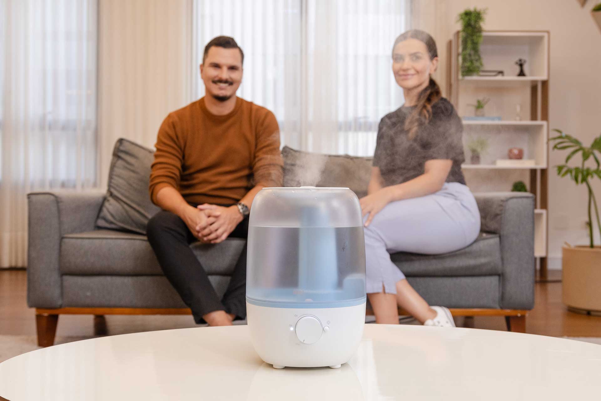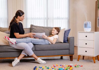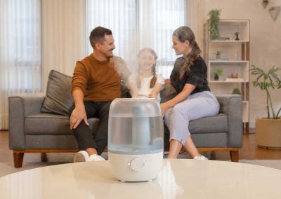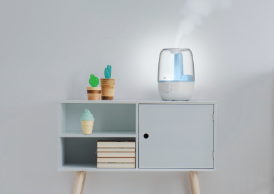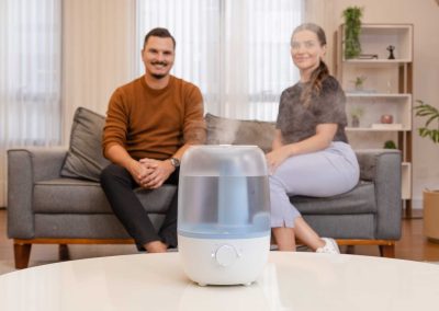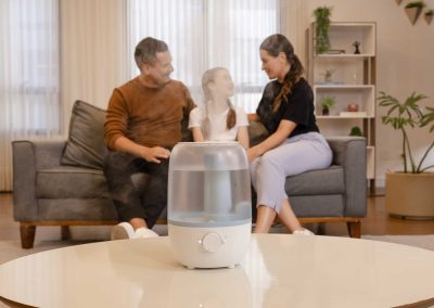 Ideal para locais secos e fechados, especialmente onde o uso do ar-condicionado é constante, o umidificador de ar ultrassônico é a melhor solução para aliviar tosse seca, congestão nasal e outros sintomas de resfriados e alergias causados pela baixa umidade do ar.