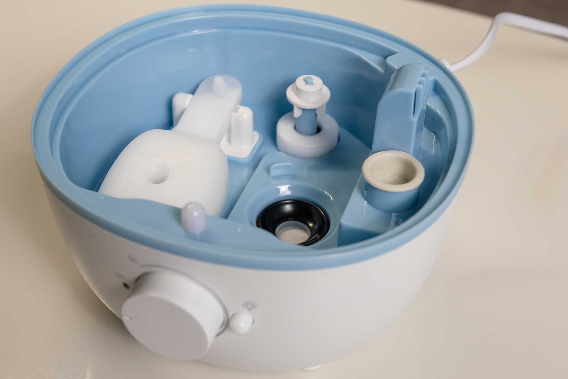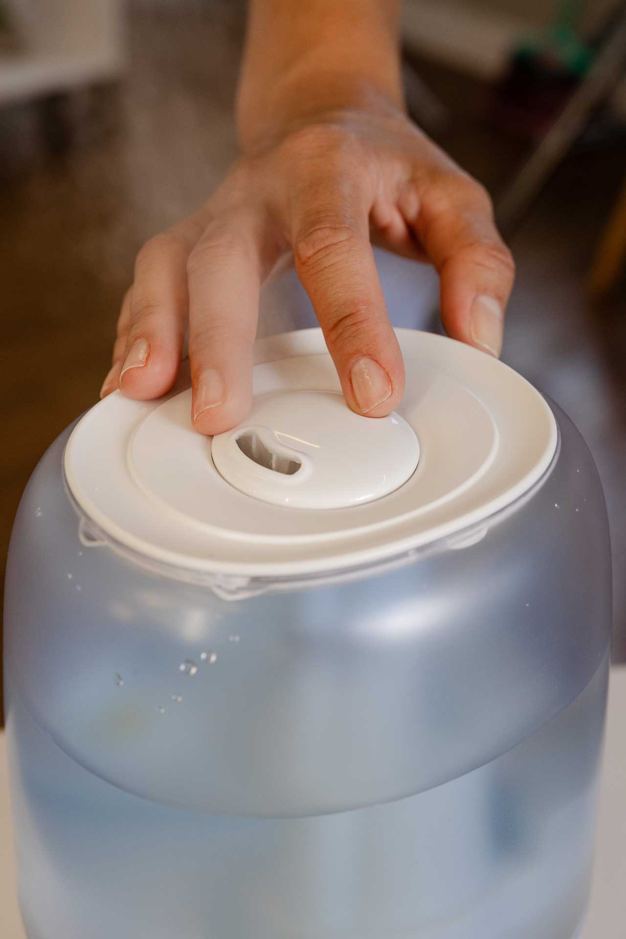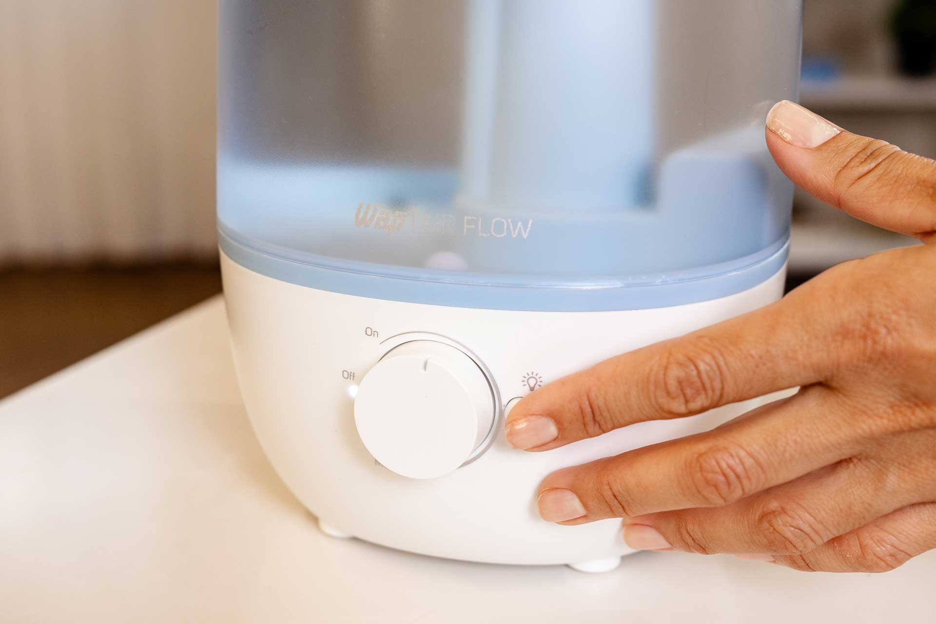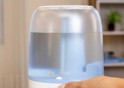 - A tampa superior do AIR FLOW permite que você abasteça seu umidificador de ar com água limpa de forma prática e com fácil manuseio.