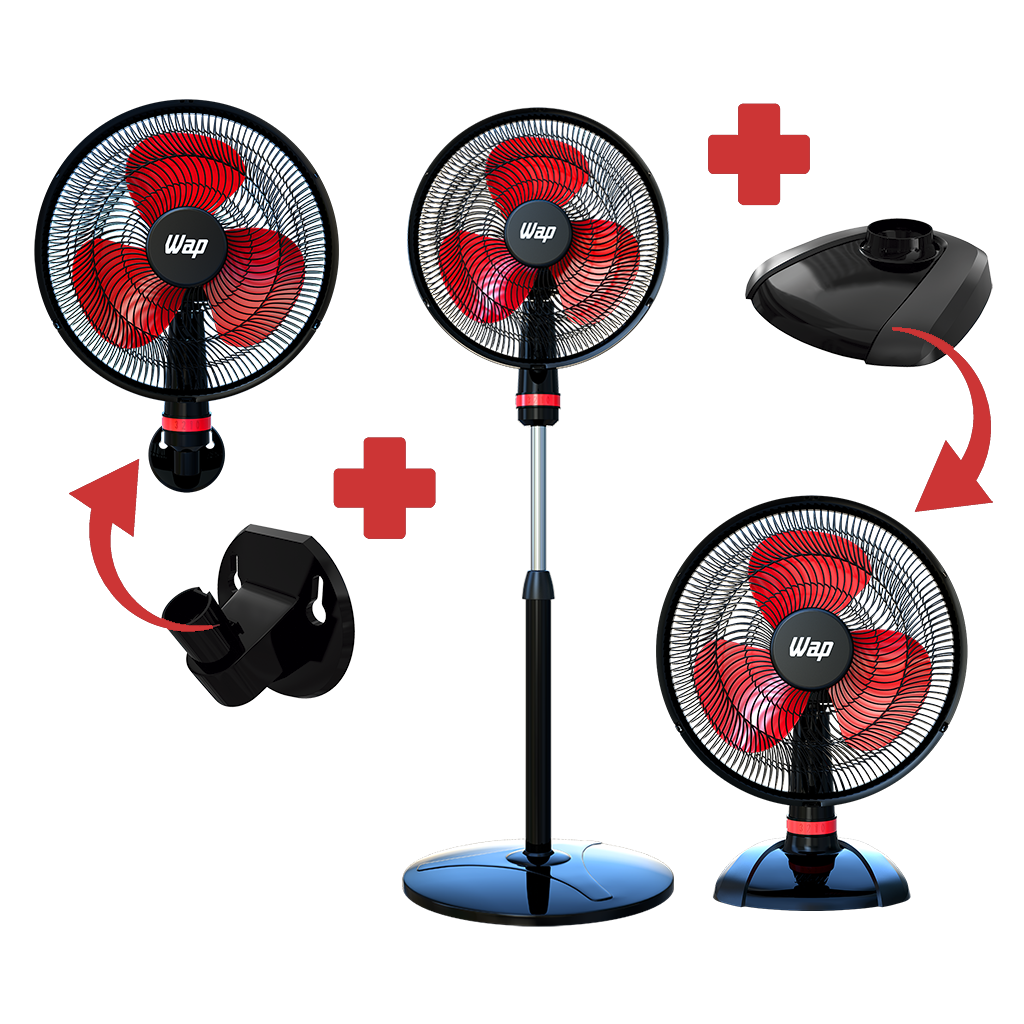 Este ventilador Rajada Turbo 3x1 também tem um dos melhores desempenhos e versatilidade do mercado. Esta versatilidade é ligada à sua leveza e praticidade se adapta em qualquer ambiente, cômodo e situação, pois vem com base de mesa, de parede e suporte de coluna. As trocas dessas bases são bem simples, podem ser facilmente montados e desmontados por não necessitar de nenhuma ferramenta.
