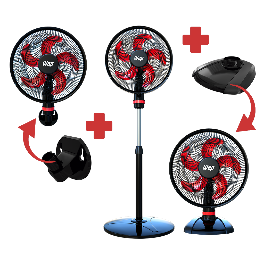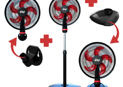 O Ventilador WAP Rajada Turbo W130 3 em 1 com 5 pás e grade de 50 cm, na cor vermelha, possui um design robusto, potente e baixo nível de ruído. Esse produto exclusivo da WAP consegue ventilar ambientes inteiros com menos consumo de energia e mais economia para o seu bolso.