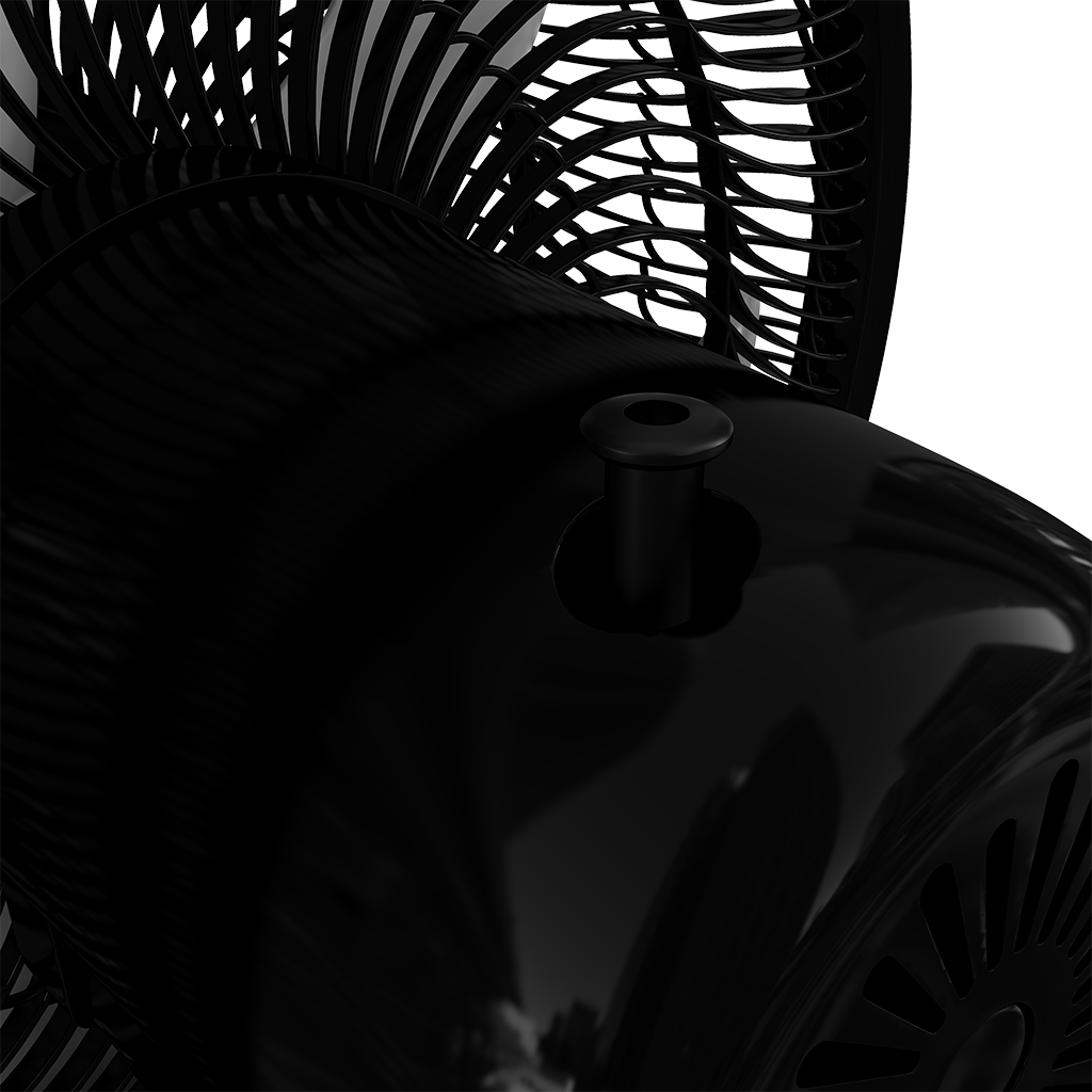 São 130 Watts para produzir mais vento. Possui controle de velocidade, são três níveis distintos, você decide a velocidade em que seu ventilador irá operar; ângulo de inclinação de até 30º para você deixar o ventilador na posição que preferir; e com o botão de oscilação, o ventilador possui uma abrangência maior de funcionamento.